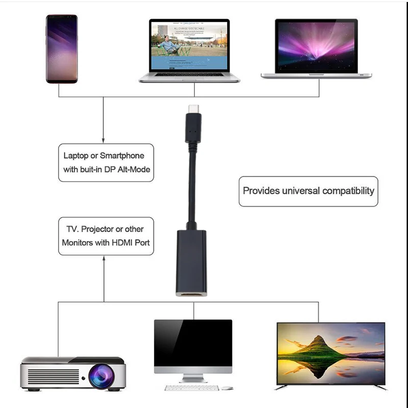4K 30Hz Type C 3.1 Male To HDMI-compatible Female Cable Adapter Converter USB C To HDMI-compatible Adapter For S9/8 Plus LG G8