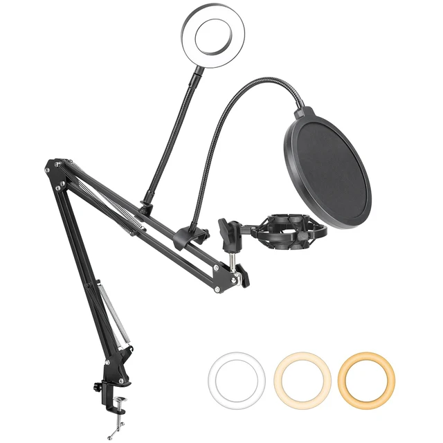 bm 800 Microphone Adjustable Suspension Arm Stand Clip Holder and Table Mounting Clamp With Pop Filter for bm800 Microphone