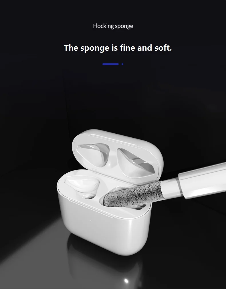 2.Flocking sponge: exquisite and soft flocking sponge, which can clean the dust in the headset wireless charging box.