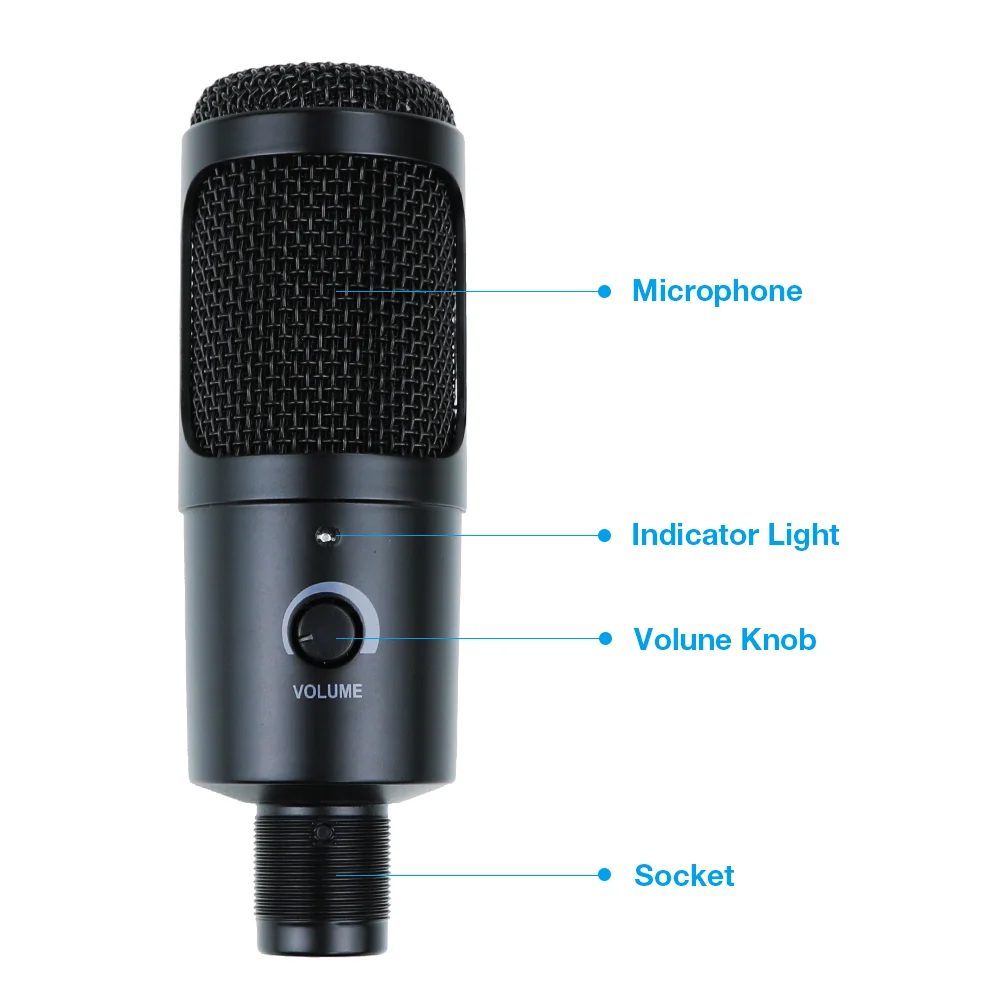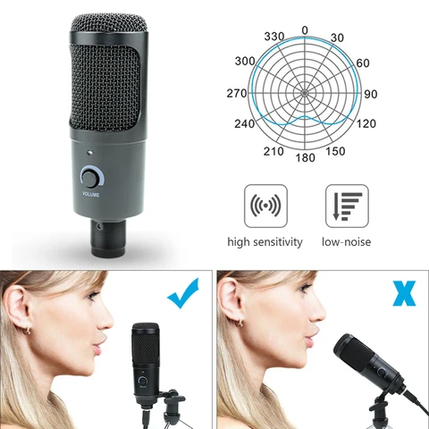 With the USB terminal to supply power, the condenser microphone needs no sound card or other assistive devices.