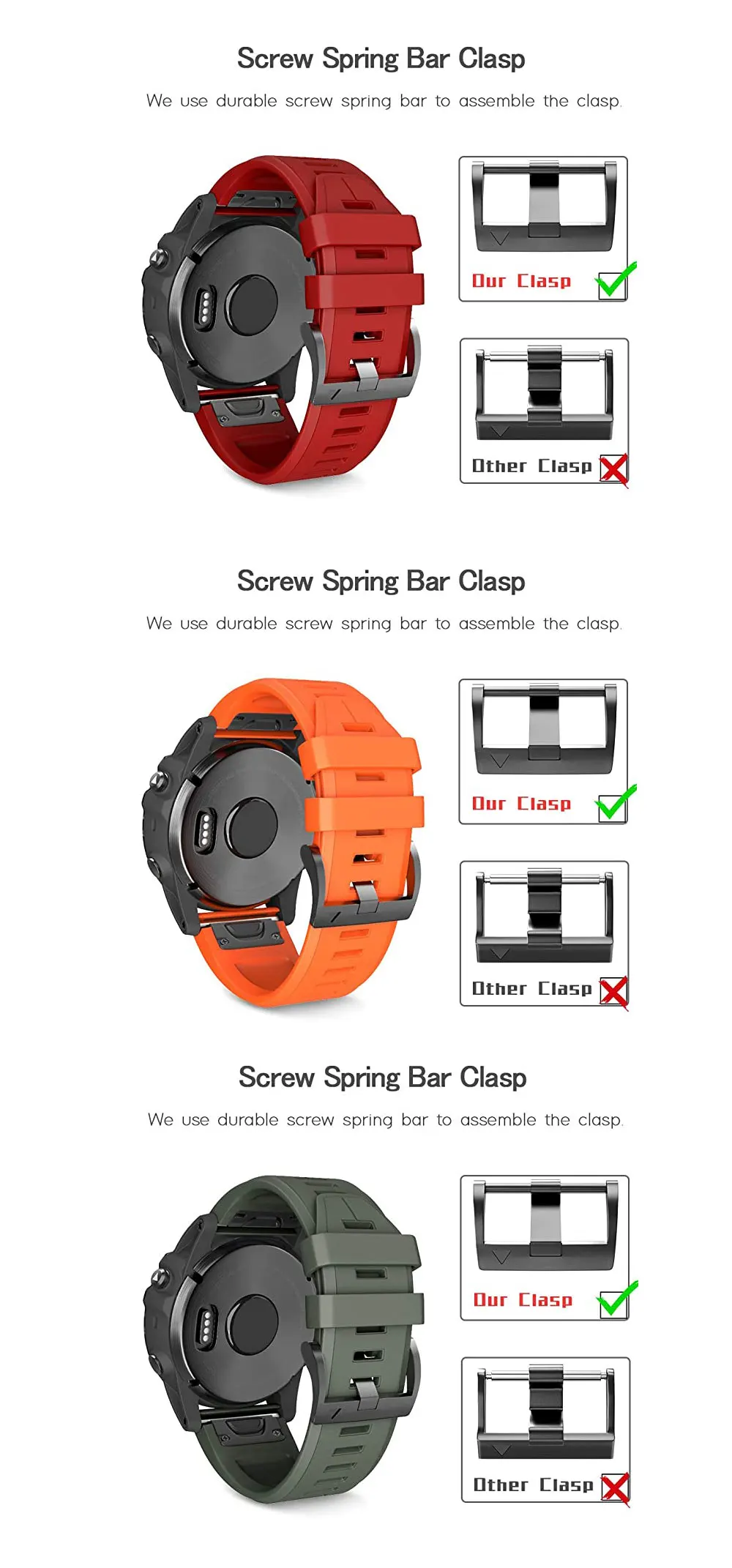 • 26mm Smart Watch Bands Straps For Garmin Fenix 7 7X 6 6X 5X 5 3HR Forerunner 935 945 Quick Release Easyfit Silicone Bracelet