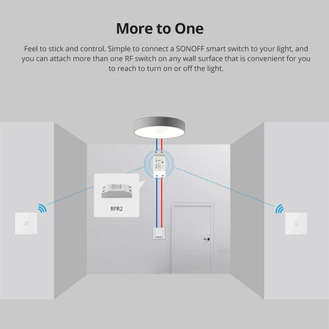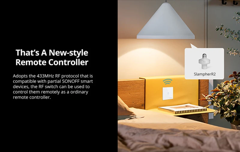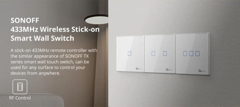 Does the 433MHz wireless stick-on smart wall switch is the extended new arrival of SONOFF’s best-selling TX series Wi-Fi Wall Smart Switch? No. It continues the similar look with TX series to keep your home style modern and artistic, and is actually a 433MHz remote controller.