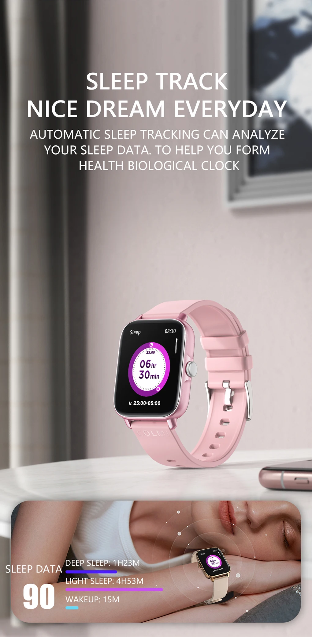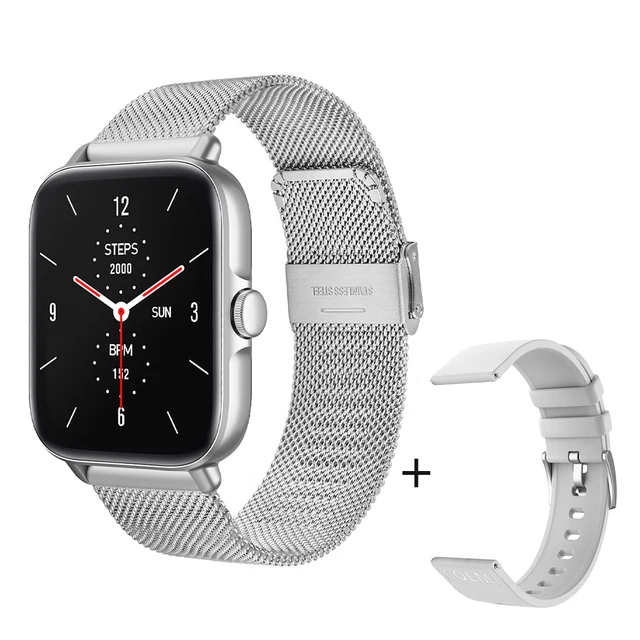 > Health: 24/7 Heart Rate monitor, Blood Pressure, Blood Oxygen, Sleep tracker, Breathe, Drink water reminder, Reminder to move, Women's menstrual period reminder, Support health APP.