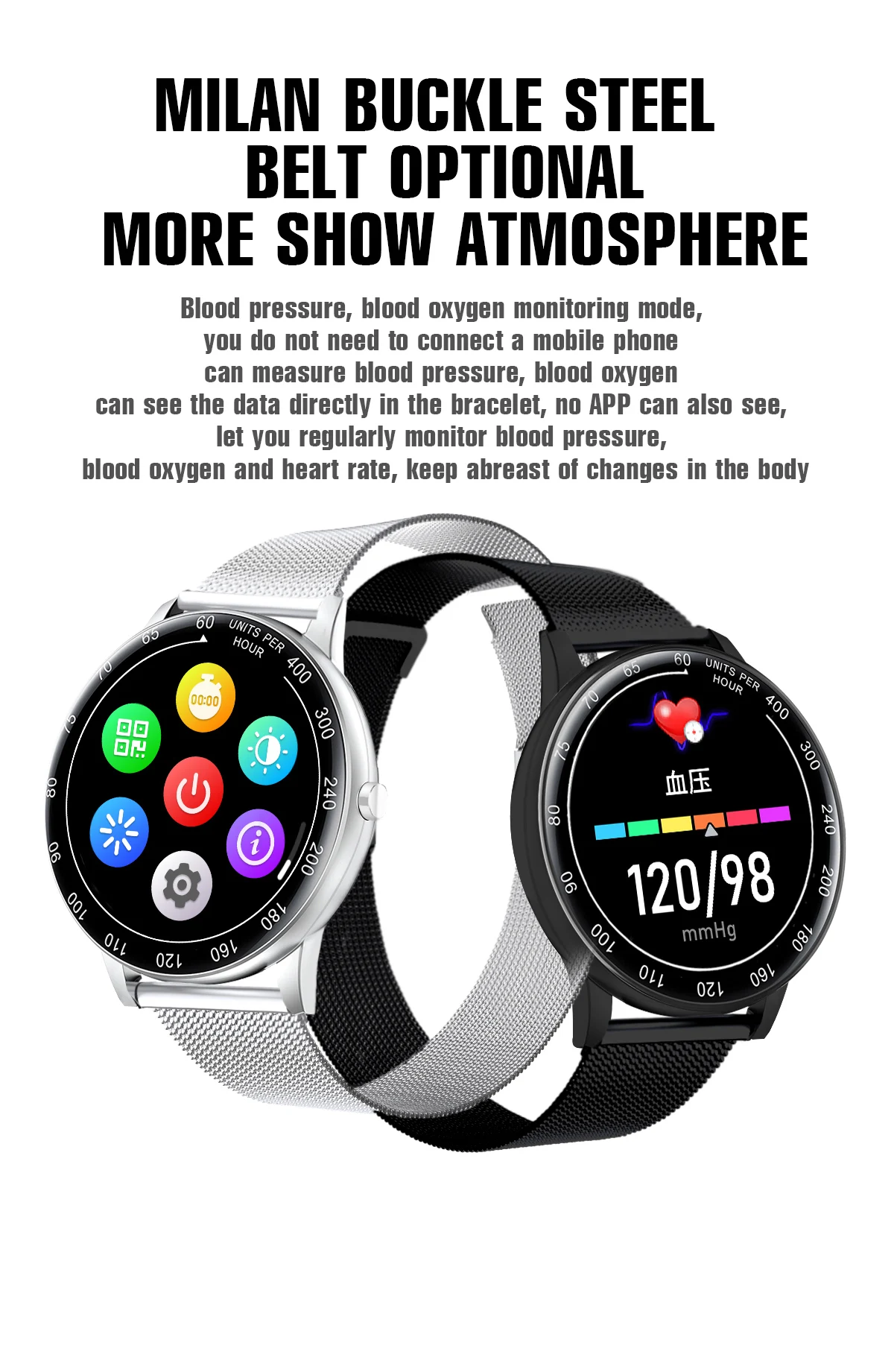 --Before using, scan the QR code on the manual to download the app and connect it to the watch with APP.