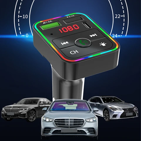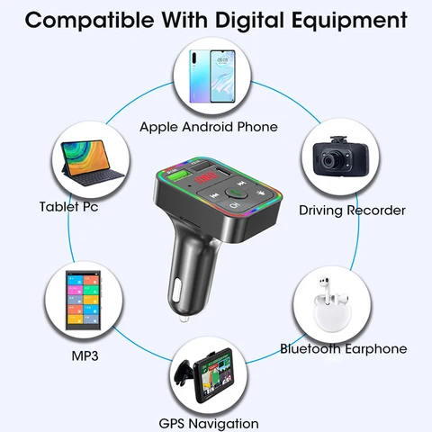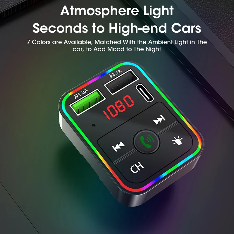 • 5.0 FM Transmitter Car MP3 Player Atmosphere light Wireless Handsfree Audio Receiver USB Fast Charge TF U Disk play