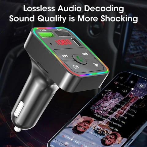 Bluetooth 5.0 FM Transmitter Car MP3 Player Atmosphere light Wireless Handsfree Audio Receiver USB Fast Charge TF U Disk play