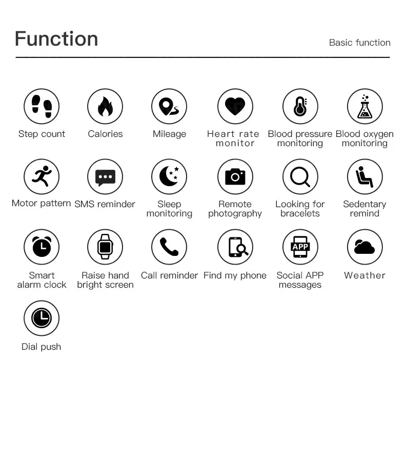 The watch can monitor the steps, calories, heart rate, distance, sleep quality, etc. Of the day. At the same time, it can connected to a smart phone to view information, remotely take pictures, retrieve mobile phones and other thoughtful and convenient functions to make your life more convenient.