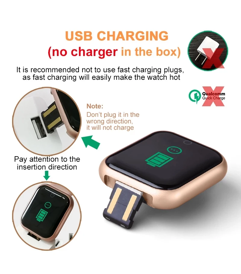Brand new bracelet charging method, quick-release detachable wristband design, can be charged by plugging in the USB interface, eliminating the trouble of carrying a charging cable and charging stand.