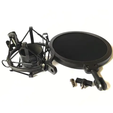 Micrófono conectado montaje de choque de metal + Prevención de soplado