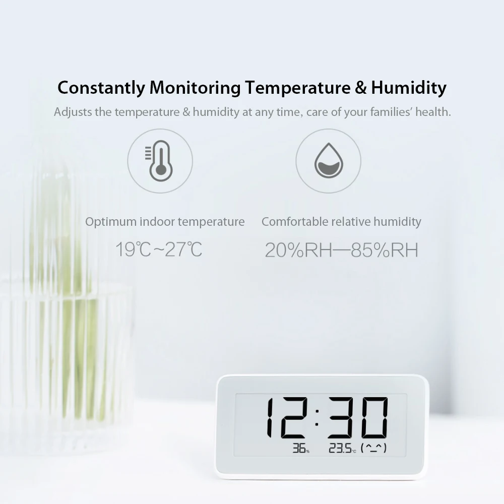 This Mi Multifunctional Digital Clock with Temperature Humidity Sensor can accurately detect the temperature and humidity in your house, its compact and small body is easily to be installed and placed anywhere. Smart connection with other smart devices via mijia gateway and check the data via Mi Home APP to guild your families\\\\\\\\\\\\\\\' health all the time.