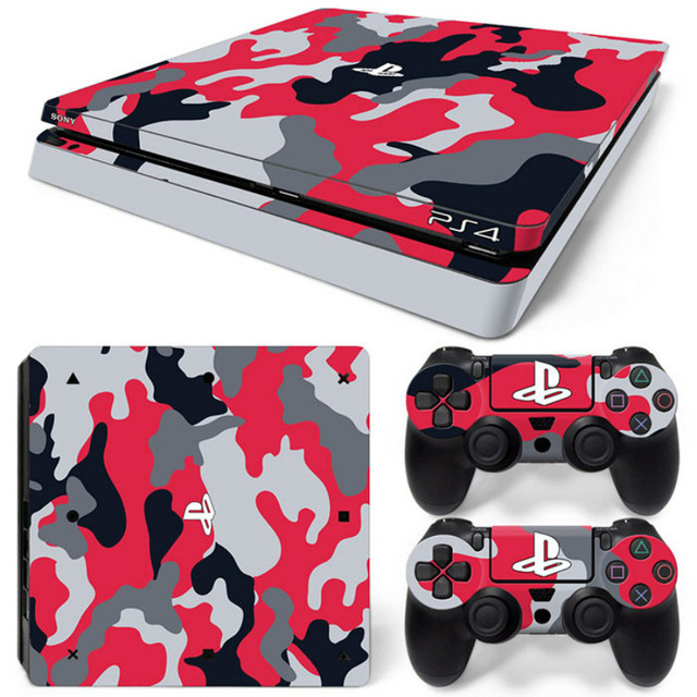 • For PS4 Slim Skin Sticker For PlayStation 4 Console and Controllers For PS4 Slim Gamepad Controller Sticker Decal