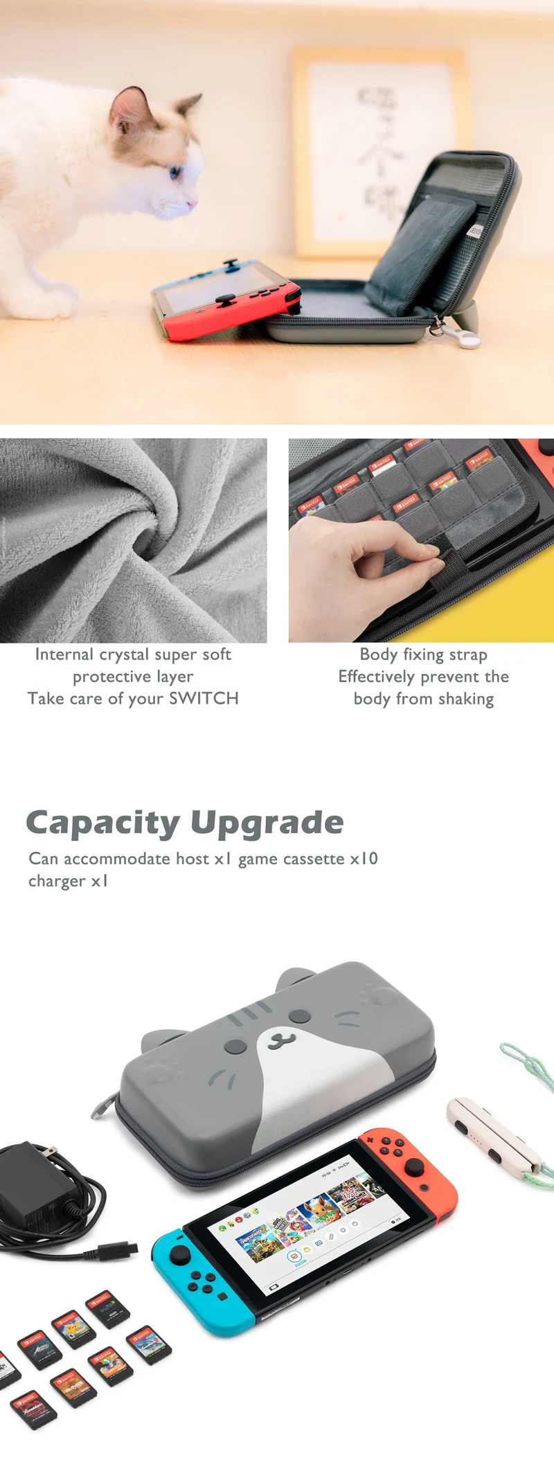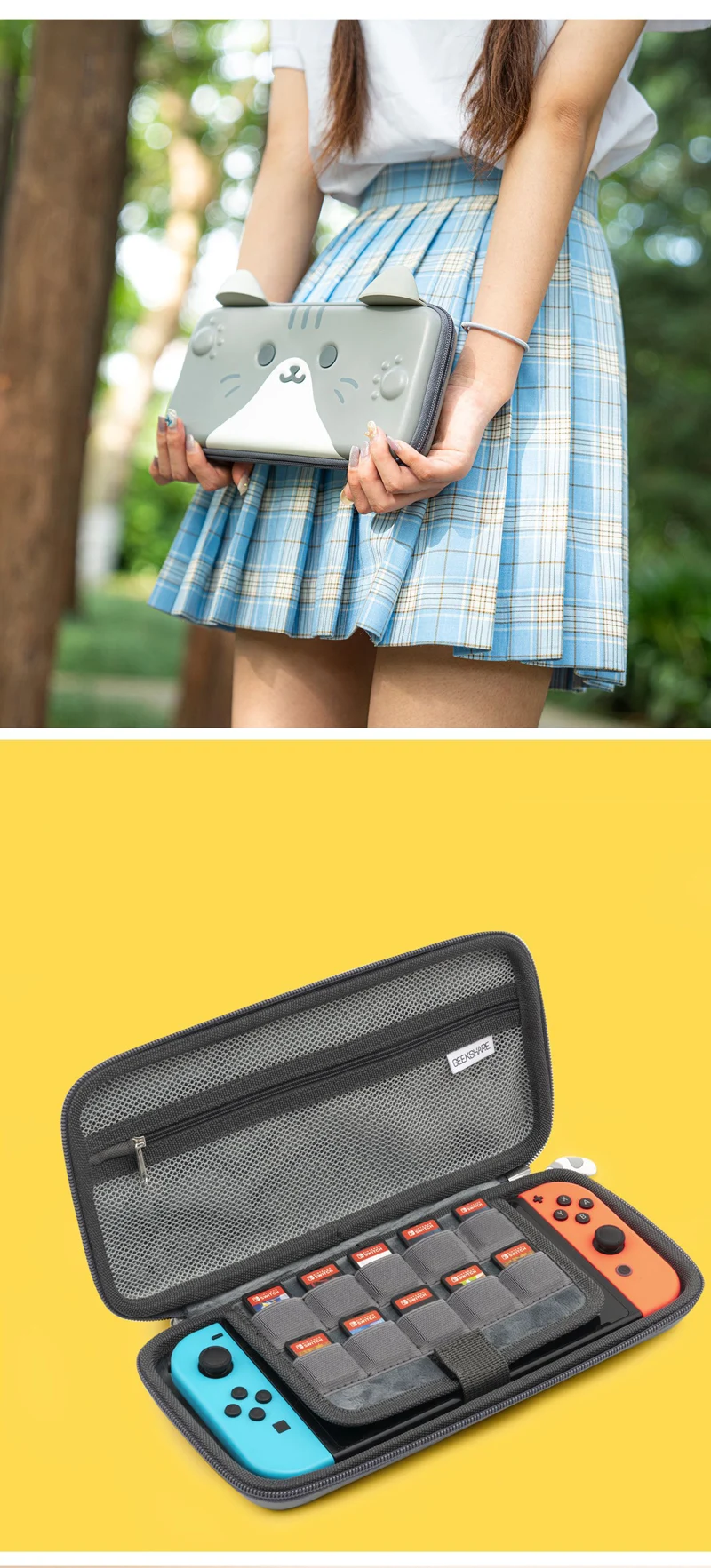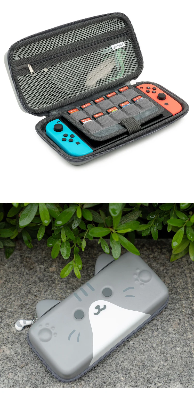 Switch Cute Cat Storage Bag Silicone Ear PU Hard Cover Shell Waterproof Box Carrying Case For Nintendo Switch Accessories