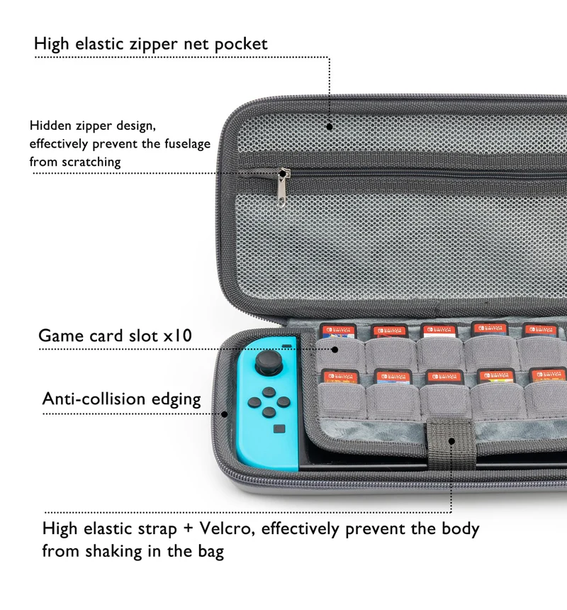 -More large-capacity storage bag can hold host x1 game cassette x10 charger x1