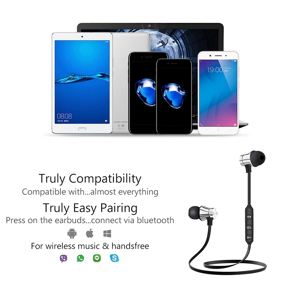 Magnetic wireless Bluetooth-compatible sport earphones headphone headset with mic for iPhone Samsung, etc.