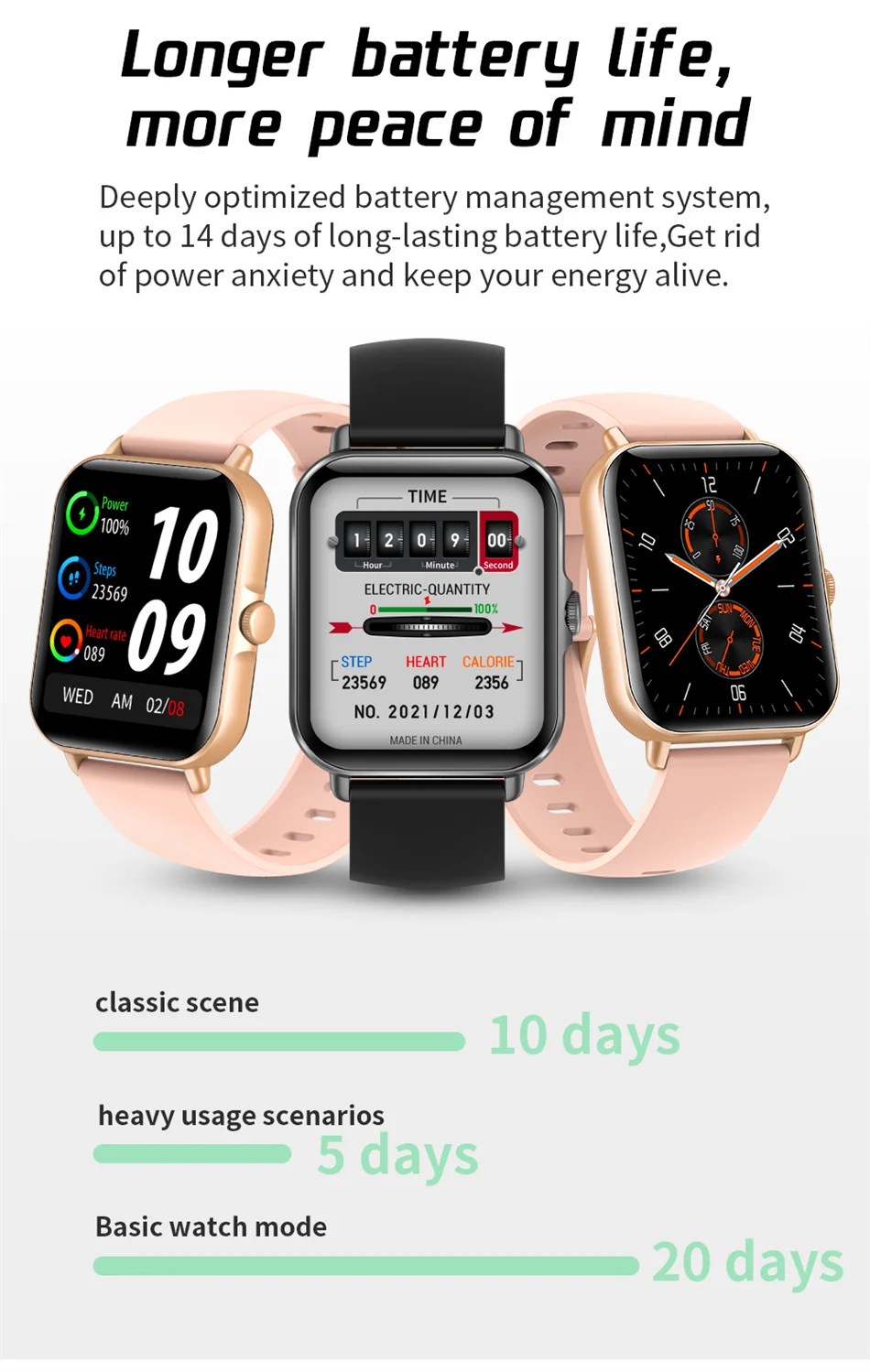 Function : Heart rate/Sleep monitoring/blood pressure/Blood oxygen/Multi-sports mode/Information and social information push/incoming call/Alarm clock/Sedentary reminder/Stopwatch/Find phone