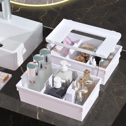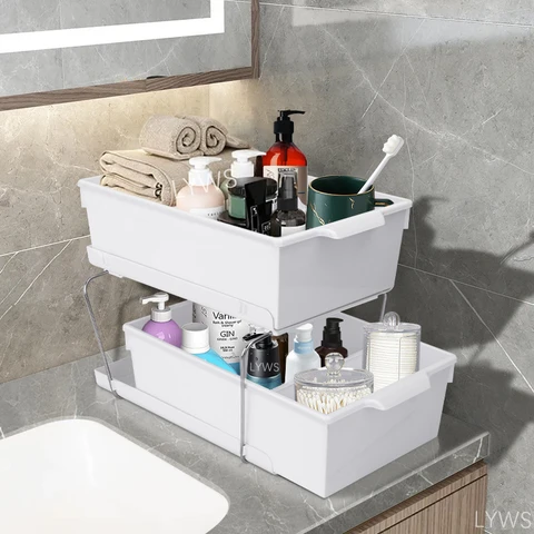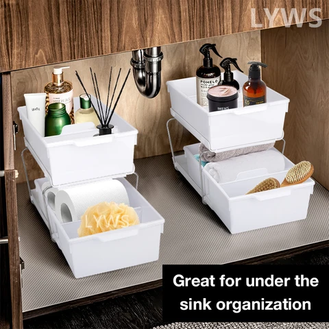 Large Capacity Under Sink Organizer For Bathroom Kitchen 2-Tier Sliding Cabinet Basket Drawer Bathroom Organizer Makeup Storage Kitchen Accessories