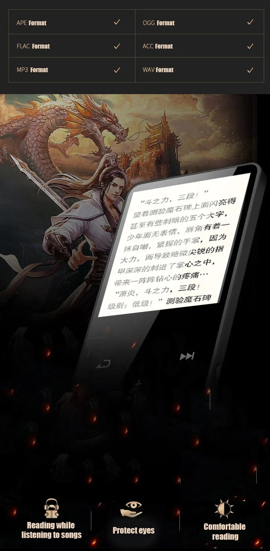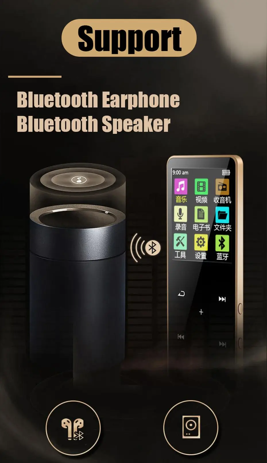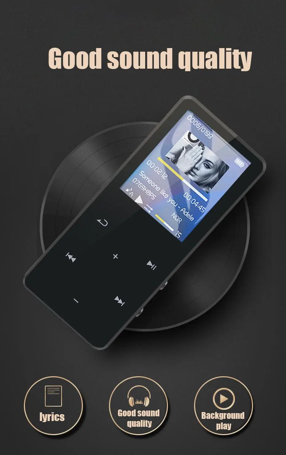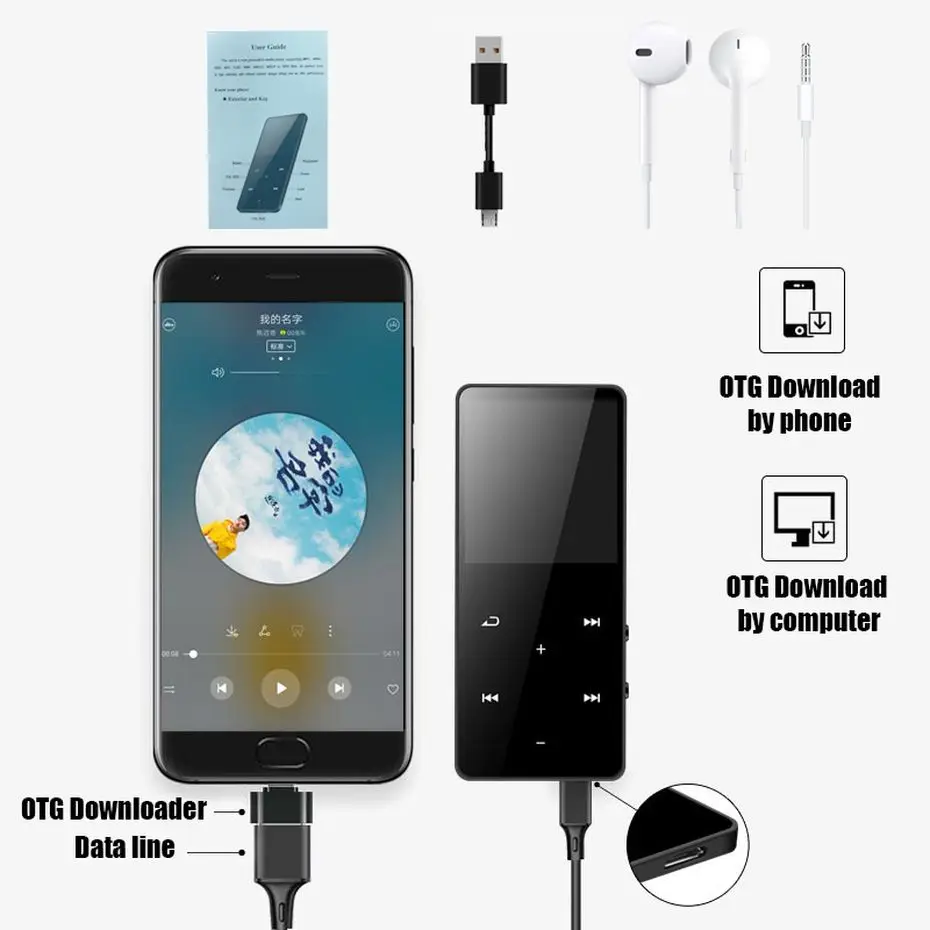 PINZHENG MP3 Player Bluetooth Speaker Sport MP3 Music Touch Key Built-in 8GB 16GB HiFi Portable Walkman With Radio FM Recording