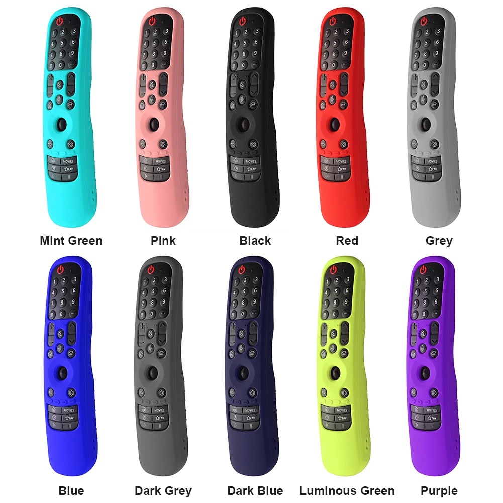 Feature: 1. Designed for LG Smart TV 2021 LG MR21GC, MR21GA (NFC) remote control. 2. Durable silicone material protects your remote control from high distance drops and effectively protects your remote control from daily impacts. 3. Made of eco-friendly silicone, harmless to your pets, kids and family. 4. Anti-slip texture design, no need to worry about losing your remote control on the sofa or bed, easy to find at night. Specification: Name: Remote Control Protective Cover Material: Silicone Color: Mint Green, Pink, Black, Red, Gray, Blue, Dark Gray, Midnight Blue, Luminous Green, Purple Size: 200*46*36mm/7.87*1.81/1.42in Applicable models: for LG MR21GA / MR21GC Note: Due to the different monitor and light effect, the actual color of the item might be slightly different from the color showed on the pictures. Thank you! Please allow 1-2cm measuring deviation due to manual measurement. ![]()