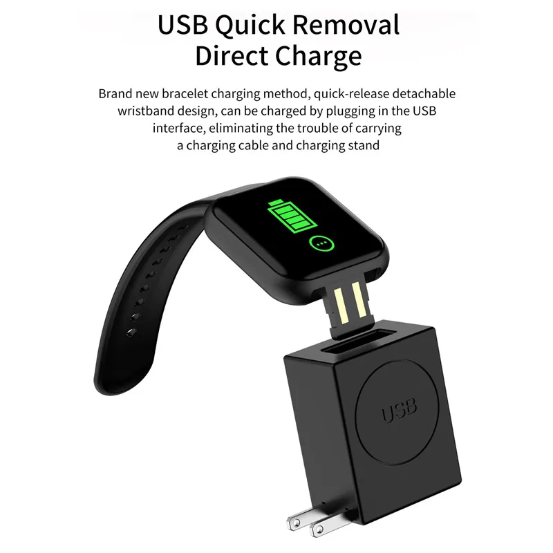 Brand new bracelet charging method, quick-release detachable wristband design, can be charged by plugging in the USB interface, eliminating the trouble of carrying a charging cable and charging stand.