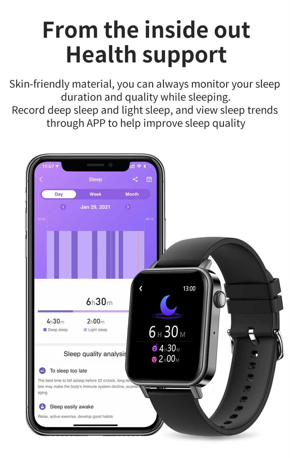 Multi-sports modes: step counting, running, cycling, indoor running, swimming, exercise, spinning, dancing, roller skating, basketball, badminton, golf, rugby, tennis