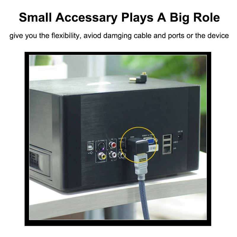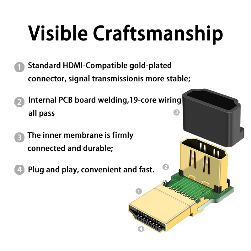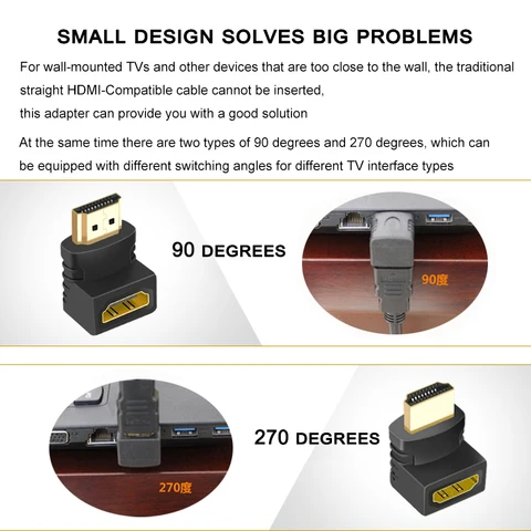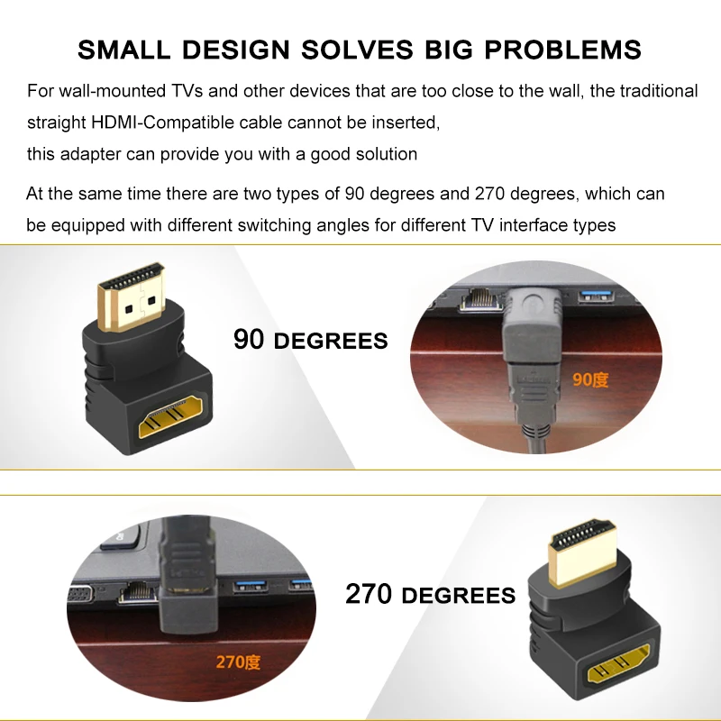 [Product function] hdmi-Compatible 90 degree adapter is suitable for all occasions where the cable needs to be turned, such as the distance between the TV and the wall is too close, you can use the HDMI-Compatibleof this elbow