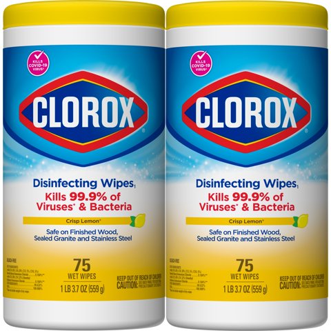 Clorox Disinfecting Wipes are triple-layered to clean, disinfect and remove allergens for 5x cleaning power and leave a fresh Crisp Lemon scent. Disinfecting Wipes clean and disinfect with antibacterial power that kills 99.9% of viruses and bacteria that can live on surfaces up to 48 hours, including staph, E. coli, MRSA, salmonella, strep and Kleb. These all-purpose disposable wipes remove common allergens, germs and messes on surfaces like kitchen counters, bathroom surfaces and more. Wipes are safe to use on finished wood, sealed granite and stainless steel. Disinfecting Wipes are also great on non-food-contact surfaces in the home, office, classroom, pet area, dorm and locker room. Clean with bleach-free wipes to keep dirt and germs away and leave behind a clean Crisp Lemon scent.