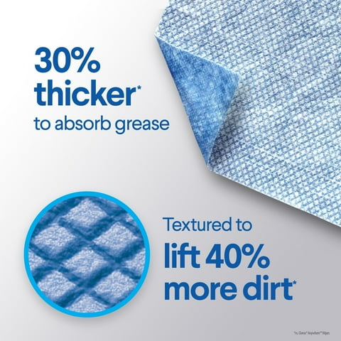 - HOUSEHOLD CLEANER: Textured to lift 40% more dirt and 30% thicker to absorb more grease the dual-sided cleaning wipe is reinforced to scrub messes while the grime catching ridges trap particles.