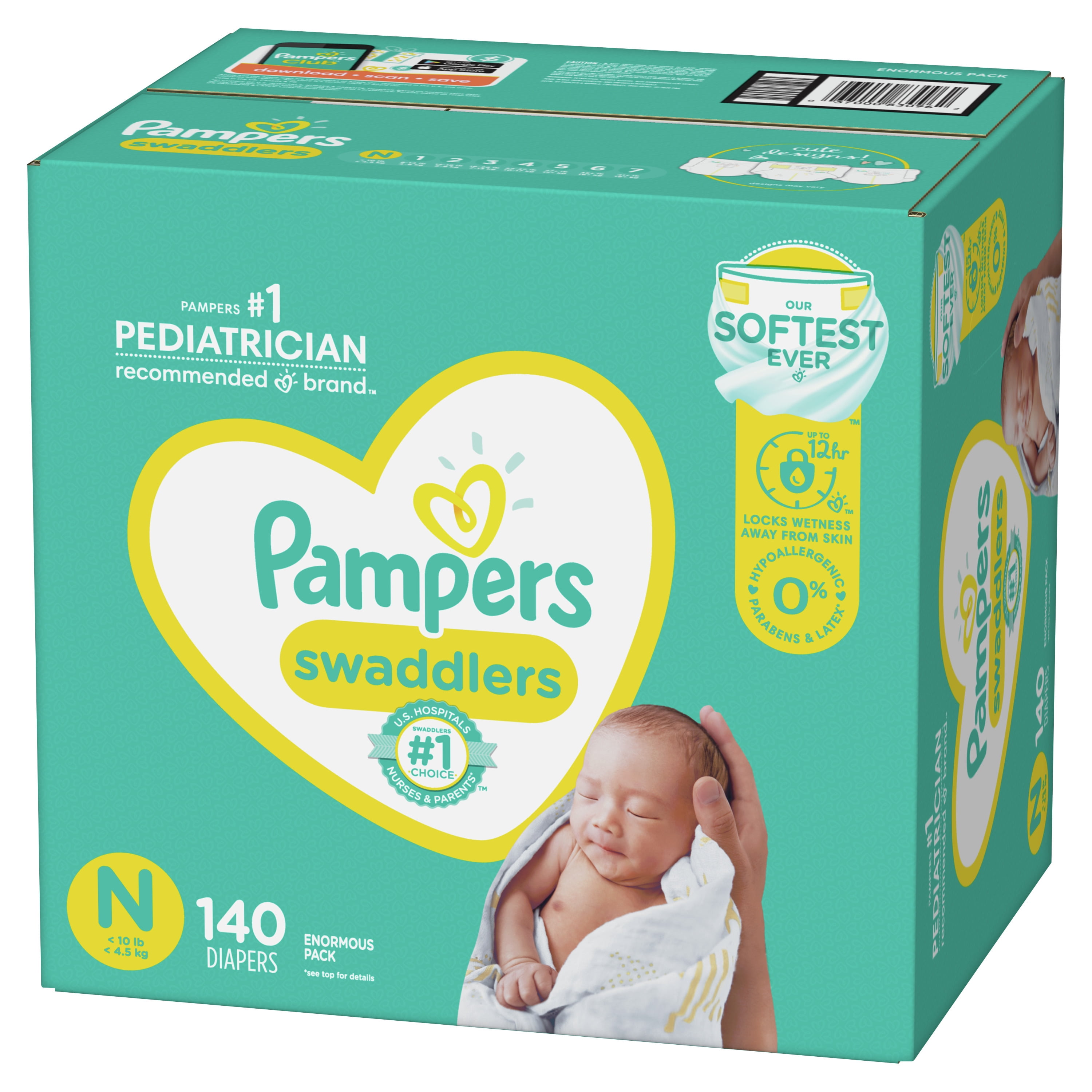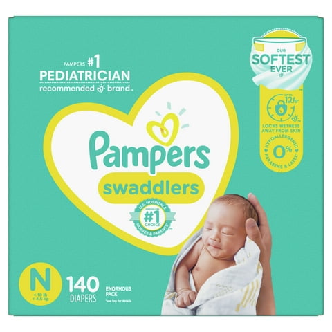 New & improved! Product and packaging may vary. What keeps baby`s skin healthy? A diaper that doesn`t leave skin wet. That`s why new and improved Pampers Swaddlers absorb wetness better and provide up to 100% leakproof skin protection to help keep your baby`s skin healthy and protected. New Pampers Swaddlers are designed with a Wrap&Protect Waistband that gently wraps around baby to help protect skin from irritation-and Wrap&Protect leg barriers that protect where leaks happen most.For trusted protection, trust Pampers Swaddlers, the #1 Choice of U.S. Hospitals, Nurses, and Parents.* Pampers LockAway Channels lock wetness away for dry, healthy skin while the BreatheFree Liner wicks away wetness, allowing baby`s skin to breathe. Plus, Pampers Swaddlers are Skin Health Alliance Dermatologist Approved, hypoallergenic, and free of parabens and latex, so you can trust them to be safe and gentle on your little one`s delicate skin. Pampers Swaddlers are available in sizes N-7 and come in a variety of sweet prints. For trusted protection, trust Pampers, the #1 pediatrician recommended brand.Download the Pampers Club App today and earn Pampers Cash!** Redeem your Pampers Cash for exclusive Pampers coupon savings and rewards! *#1 CHOICE OF U.S. HOSPITALS, NURSES AND PARENTS: Hospitals-based on hospital sales data; Nurses-vs. other hospital brands, among those with a preference; Parents-based on retail sales. 0% PARABENS AND LATEX: Latex-natural rubber. **Only redeemable via Pampers Club. No cash value.