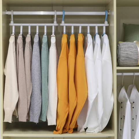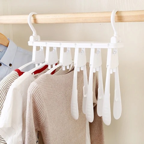 The 360-degree rotating clip can be moved left and right to dry clothes of different ages.