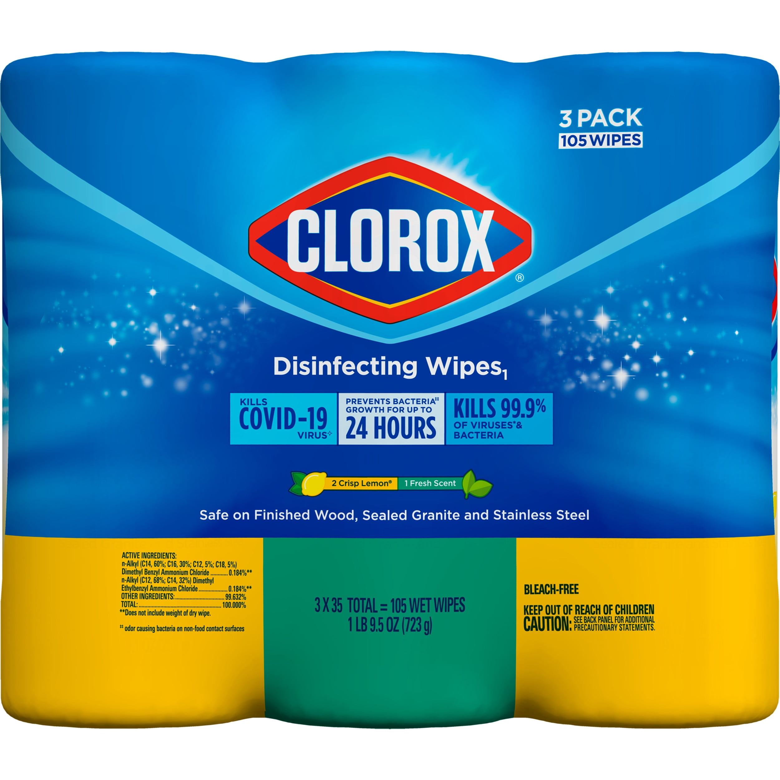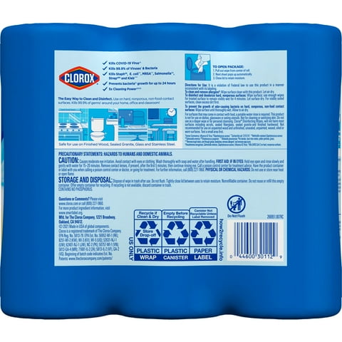 Disinfecting Wipes clean, disinfect, deodorize and remove allergens for 5x cleaning power* and leave a pleasant scent. Disinfecting Wipes clean and disinfect with antibacterial power that kills 99.9% of viruses and bacteria that can live on surfaces, including -19* Virus, staph, E. coli, MRSA, salmonella, strep and Kleb. These all-purpose disposable wipes remove common allergens, germs and messes on surfaces like kitchen counters, bathroom surfaces and more and can prevent the growth of bacteria* for up to 24 hours. Wipes are safe to use on finished wood, sealed granite and stainless steel. Clean with bleach-free wipes to keep dirt and germs away. *5x cleaning power: cleans, disinfects, deodorizes, removes allergens, leaves a scent, removes dirt, removes grime. Kills -19 virus: kills SARS-CoV-2 on hard, nonporous surfaces. Use as directed. Prevents the growth of bacteria: odor causing bacteria on non-food contact surfaces. Allow product to air dry.