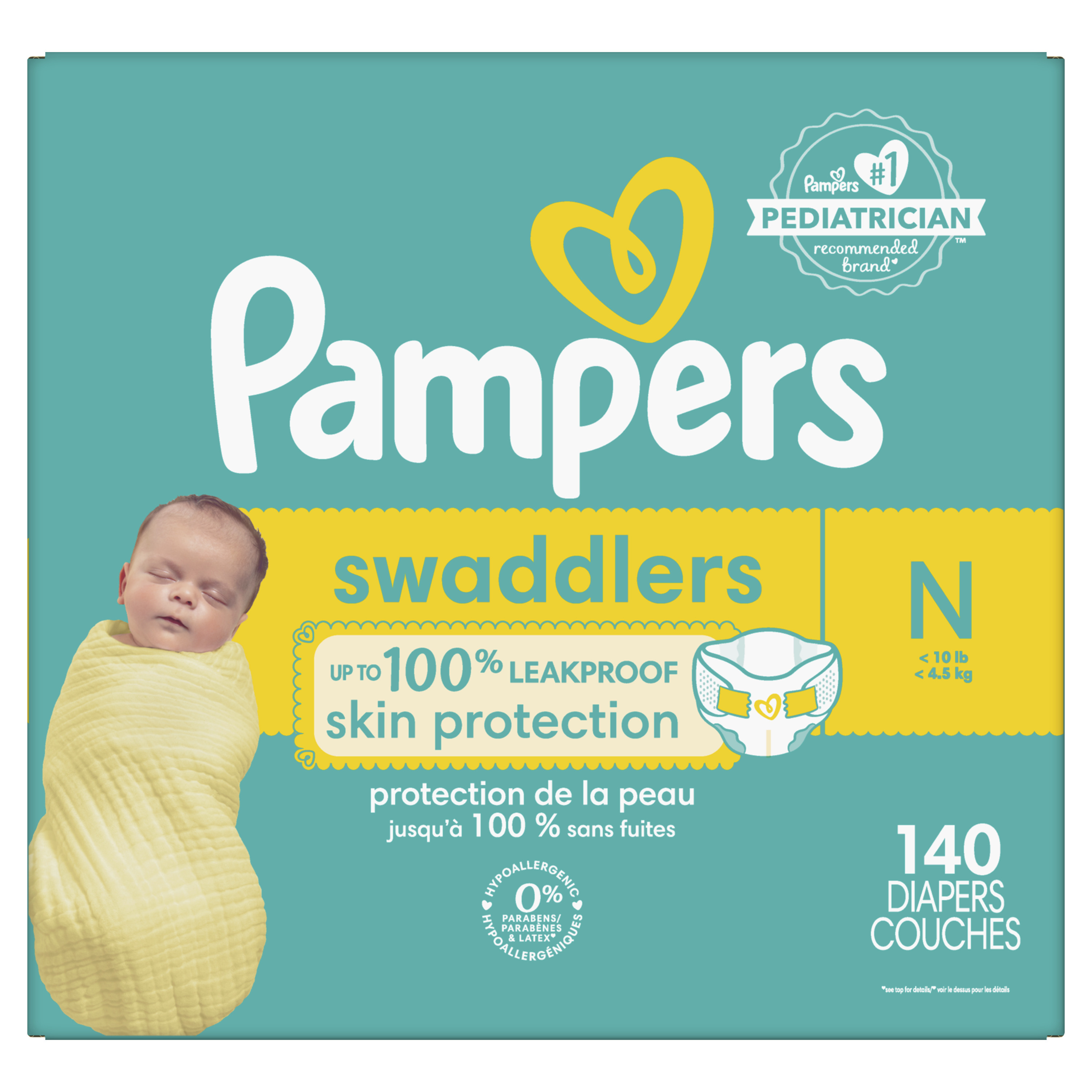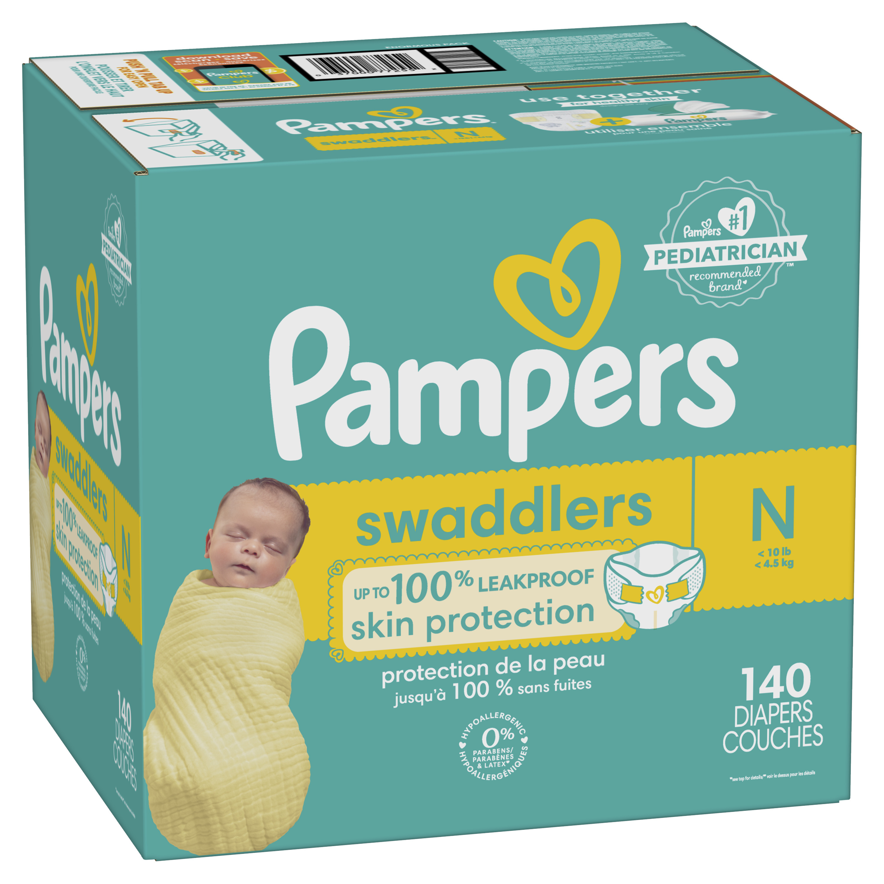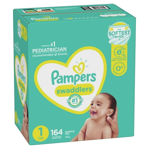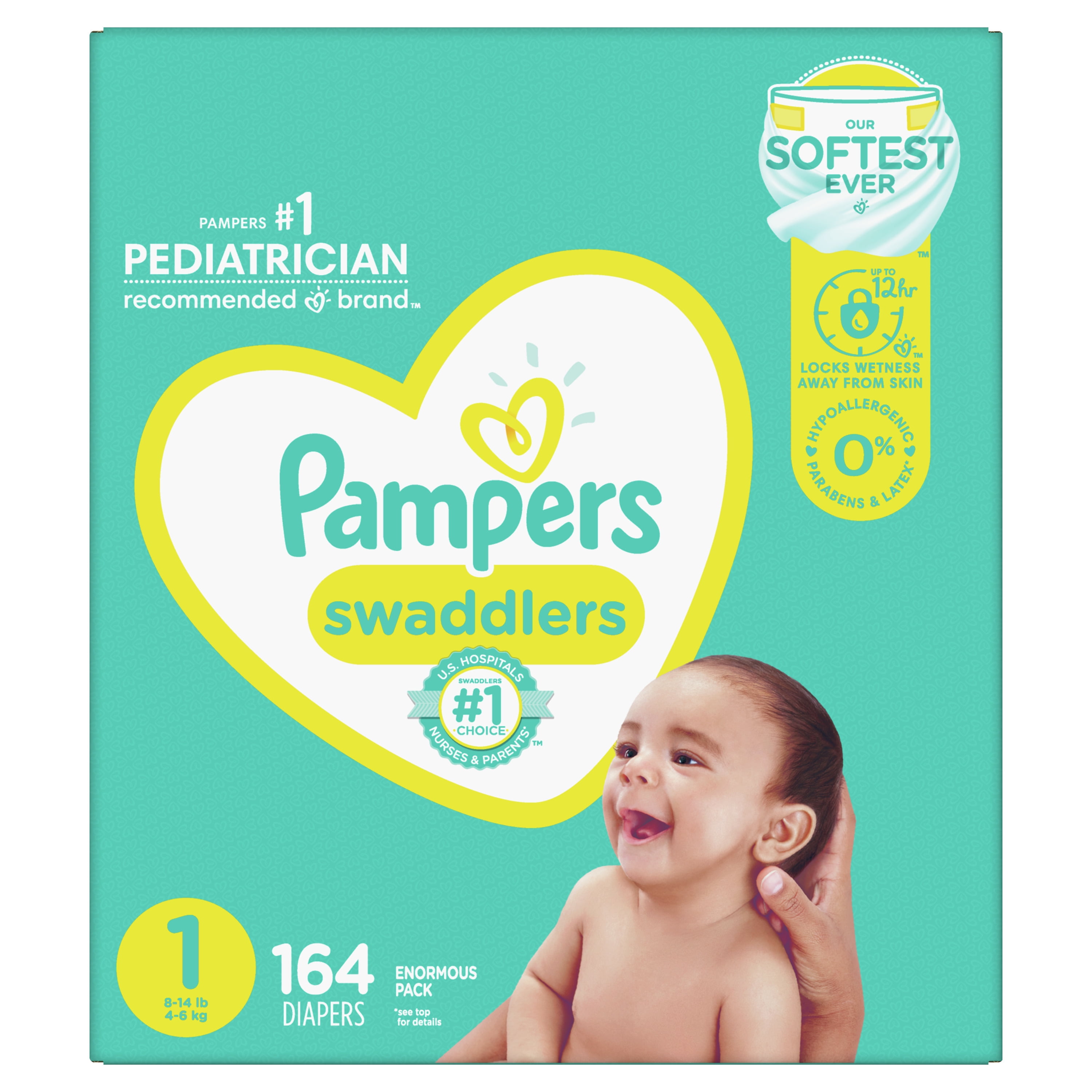 New & improved! Product and packaging may vary. What keeps baby`s skin healthy? A diaper that doesn`t leave skin wet. That`s why new and improved Pampers Swaddlers absorb wetness better and provide up to 100% leakproof skin protection to help keep your baby`s skin healthy and protected. New Pampers Swaddlers are designed with a Wrap&Protect Waistband that gently wraps around baby to help protect skin from irritation-and Wrap&Protect leg barriers that protect where leaks happen most.For trusted protection, trust Pampers Swaddlers, the #1 Choice of U.S. Hospitals, Nurses, and Parents.* Pampers LockAway Channels lock wetness away for dry, healthy skin while the BreatheFree Liner wicks away wetness, allowing baby`s skin to breathe. Plus, Pampers Swaddlers are Skin Health Alliance Dermatologist Approved, hypoallergenic, and free of parabens and latex, so you can trust them to be safe and gentle on your little one`s delicate skin. Pampers Swaddlers are available in sizes N-7 and come in a variety of sweet prints. For trusted protection, trust Pampers, the #1 pediatrician recommended brand.Download the Pampers Club App today and earn Pampers Cash!** Redeem your Pampers Cash for exclusive Pampers coupon savings and rewards! *#1 CHOICE OF U.S. HOSPITALS, NURSES AND PARENTS: Hospitals-based on hospital sales data; Nurses-vs. other hospital brands, among those with a preference; Parents-based on retail sales. 0% PARABENS AND LATEX: Latex-natural rubber. **Only redeemable via Pampers Club. No cash value.