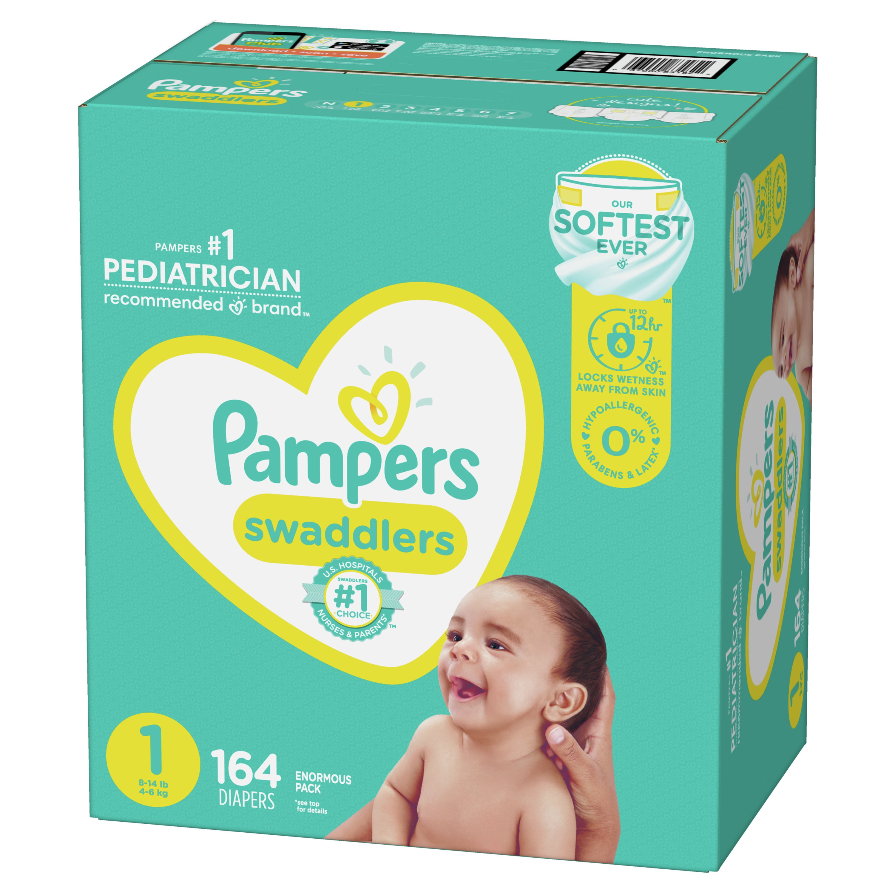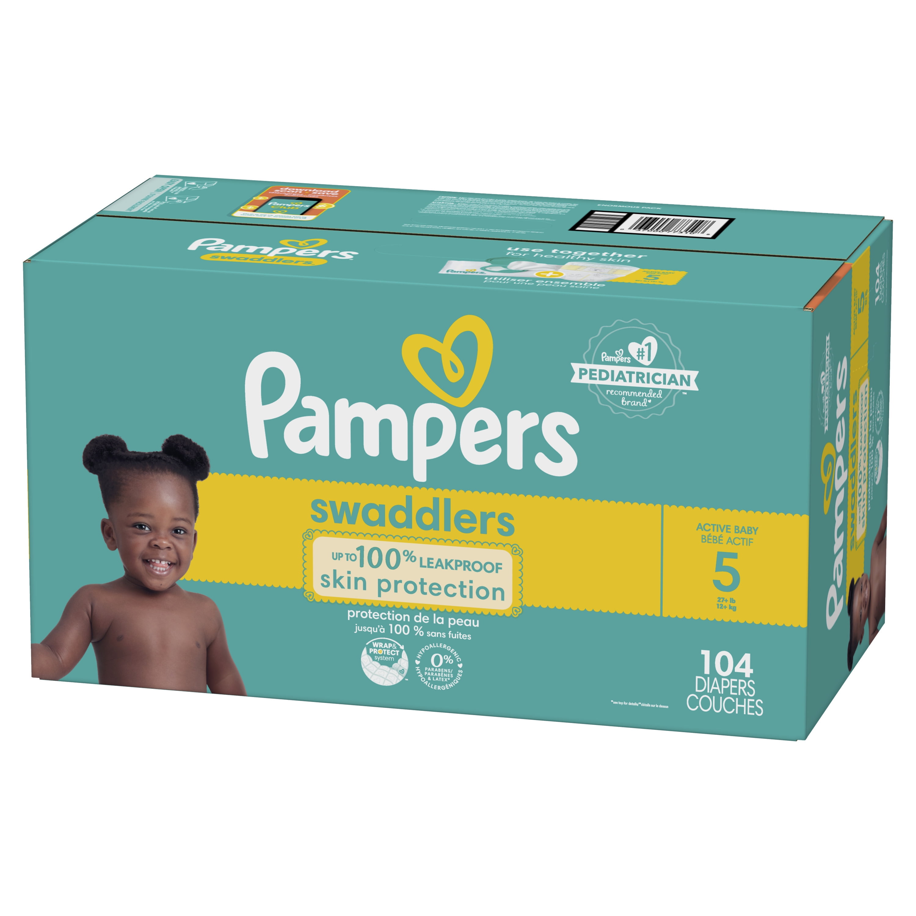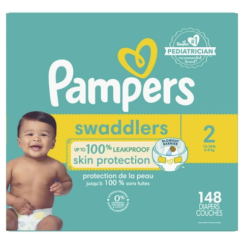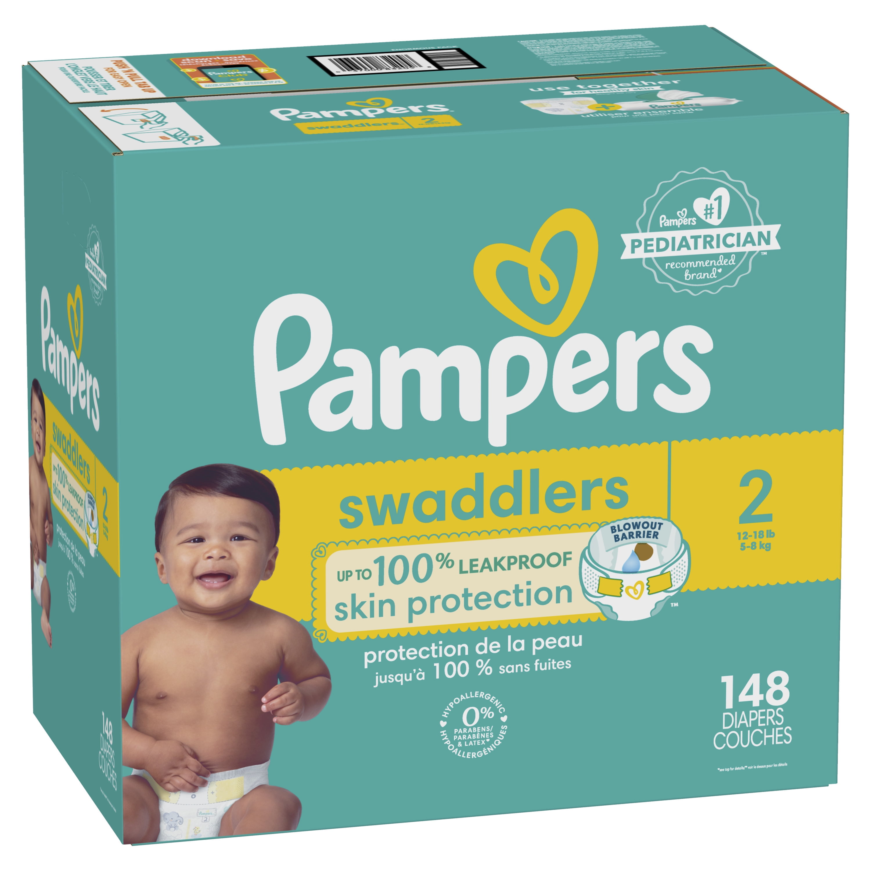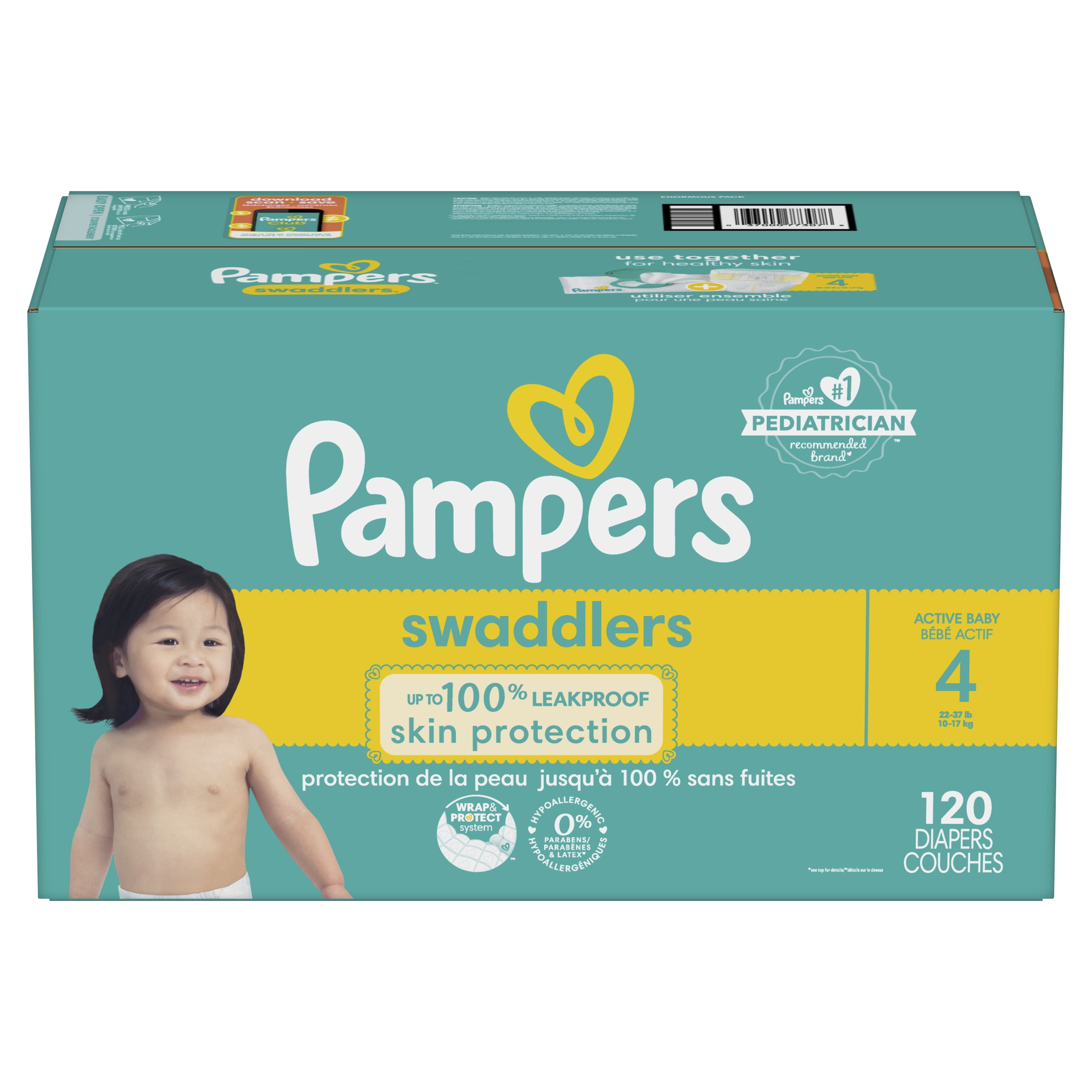 New & improved! Product and packaging may vary. What keeps baby`s skin healthy? A diaper that doesn`t leave skin wet. That`s why new and improved Pampers Swaddlers absorb wetness better and provide up to 100% leakproof skin protection to help keep your baby`s skin healthy and protected. New Pampers Swaddlers are designed with a Wrap&Protect Waistband that gently wraps around baby to help protect skin from irritation-and Wrap&Protect leg barriers that protect where leaks happen most.For trusted protection, trust Pampers Swaddlers, the #1 Choice of U.S. Hospitals, Nurses, and Parents.* Pampers LockAway Channels lock wetness away for dry, healthy skin while the BreatheFree Liner wicks away wetness, allowing baby`s skin to breathe. Plus, Pampers Swaddlers are Skin Health Alliance Dermatologist Approved, hypoallergenic, and free of parabens and latex, so you can trust them to be safe and gentle on your little one`s delicate skin. Pampers Swaddlers are available in sizes N-7 and come in a variety of sweet prints. For trusted protection, trust Pampers, the #1 pediatrician recommended brand.Download the Pampers Club App today and earn Pampers Cash!** Redeem your Pampers Cash for exclusive Pampers coupon savings and rewards! *#1 CHOICE OF U.S. HOSPITALS, NURSES AND PARENTS: Hospitals-based on hospital sales data; Nurses-vs. other hospital brands, among those with a preference; Parents-based on retail sales. 0% PARABENS AND LATEX: Latex-natural rubber. **Only redeemable via Pampers Club. No cash value.