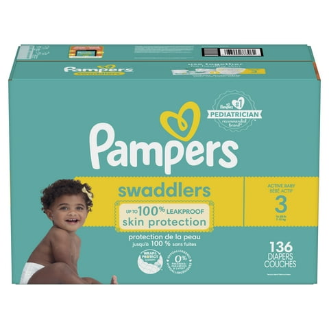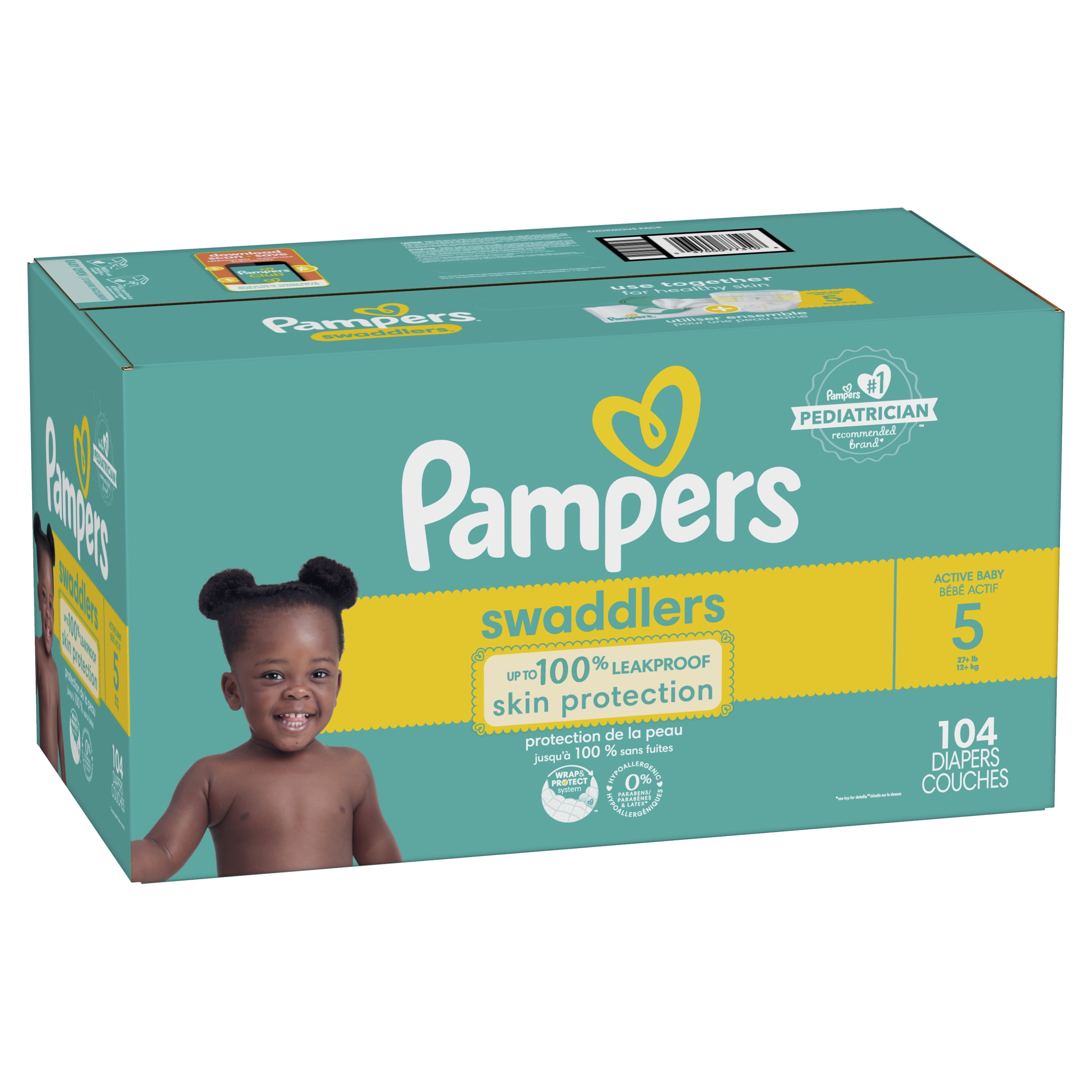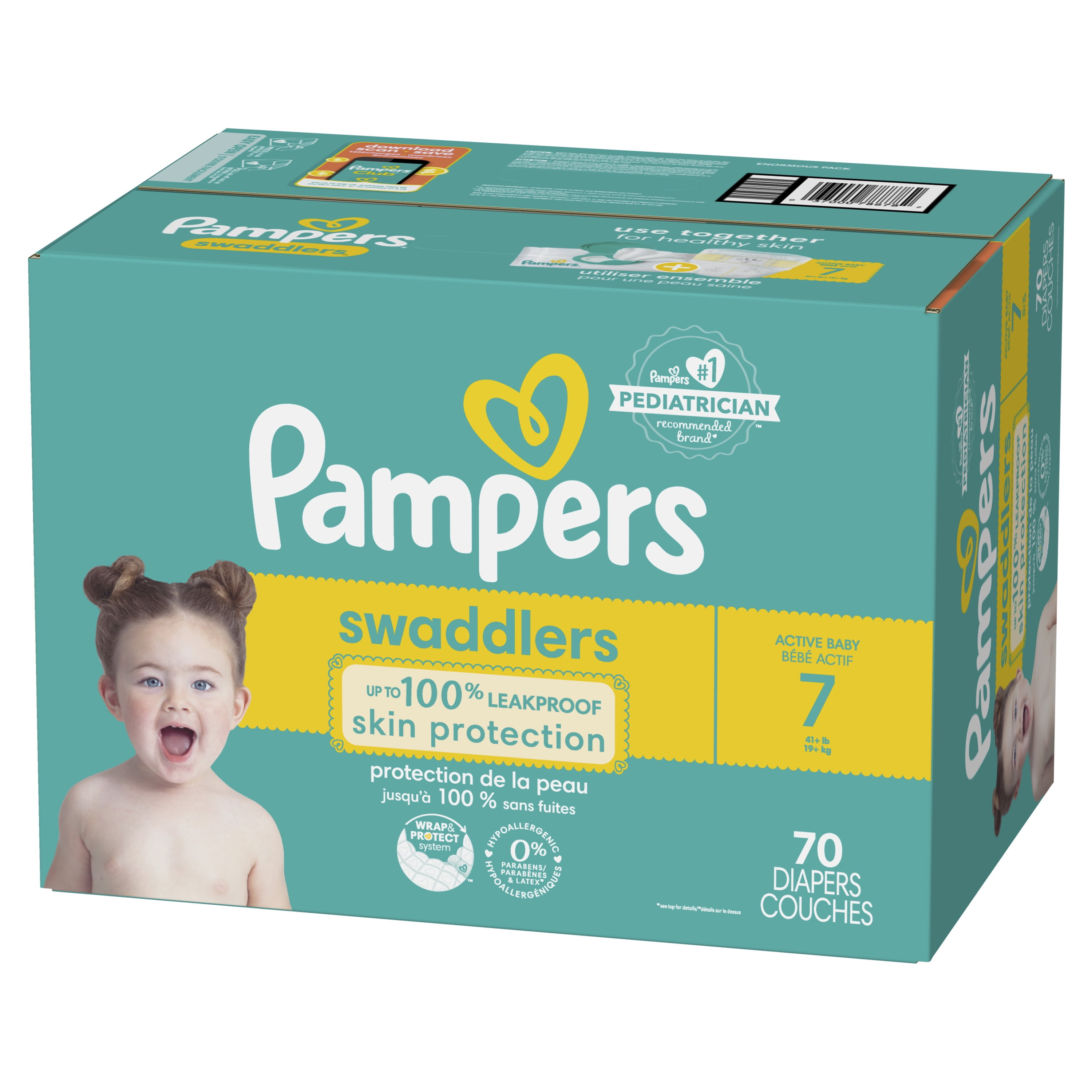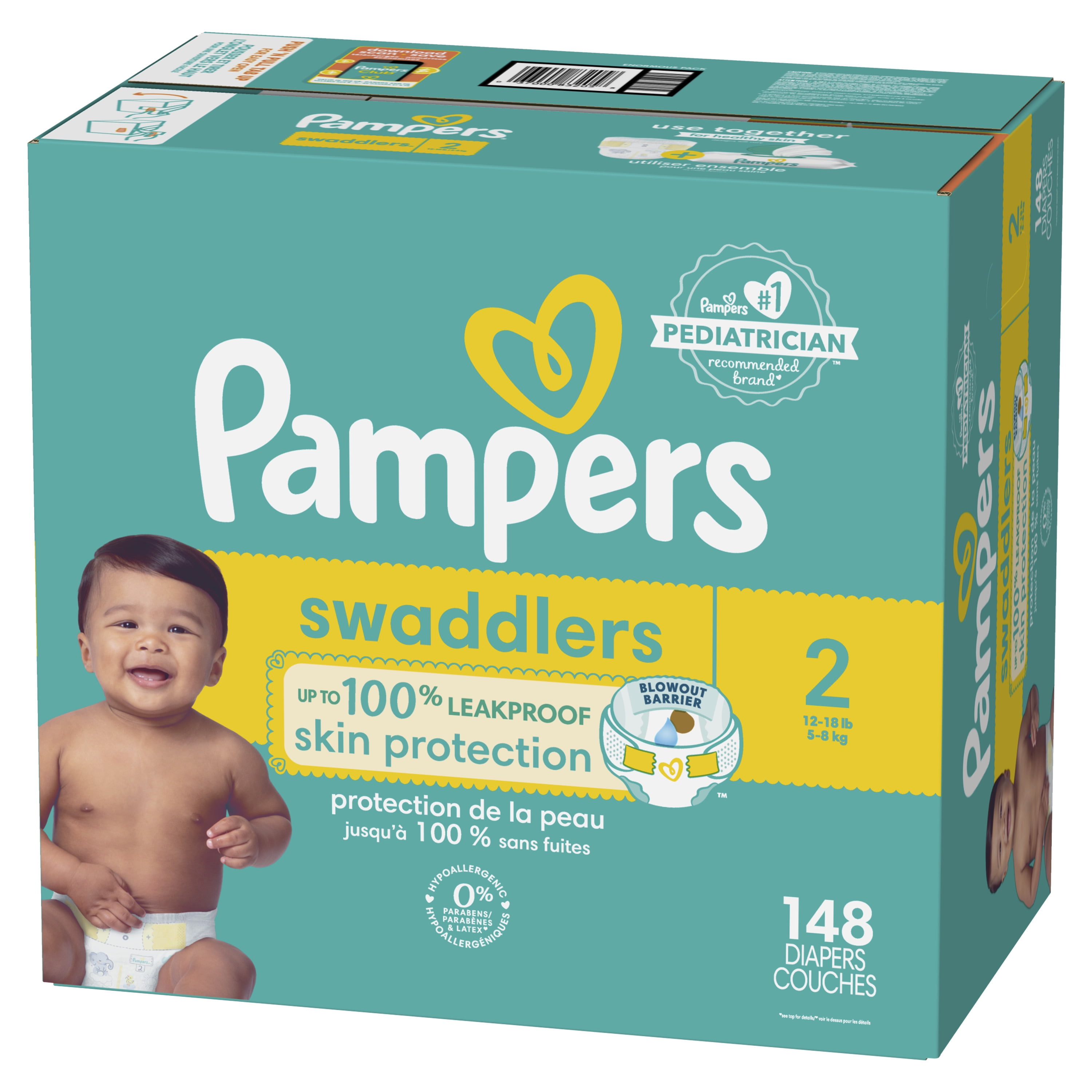 New & improved! Product and packaging may vary. What keeps baby`s skin healthy? A diaper that doesn`t leave skin wet. That`s why new and improved Pampers Swaddlers absorb wetness better and provide up to 100% leakproof skin protection to help keep your baby`s skin healthy and protected. New Pampers Swaddlers are designed with a Wrap&Protect Waistband that gently wraps around baby to help protect skin from irritation-and Wrap&Protect leg barriers that protect where leaks happen most.For trusted protection, trust Pampers Swaddlers, the #1 Choice of U.S. Hospitals, Nurses, and Parents.* Pampers LockAway Channels lock wetness away for dry, healthy skin while the BreatheFree Liner wicks away wetness, allowing baby`s skin to breathe. Plus, Pampers Swaddlers are Skin Health Alliance Dermatologist Approved, hypoallergenic, and free of parabens and latex, so you can trust them to be safe and gentle on your little one`s delicate skin. Pampers Swaddlers are available in sizes N-7 and come in a variety of sweet prints. For trusted protection, trust Pampers, the #1 pediatrician recommended brand.Download the Pampers Club App today and earn Pampers Cash!** Redeem your Pampers Cash for exclusive Pampers coupon savings and rewards! *#1 CHOICE OF U.S. HOSPITALS, NURSES AND PARENTS: Hospitals-based on hospital sales data; Nurses-vs. other hospital brands, among those with a preference; Parents-based on retail sales. 0% PARABENS AND LATEX: Latex-natural rubber. **Only redeemable via Pampers Club. No cash value.