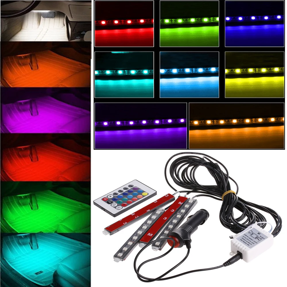 This is about one set of decoration light, including 4 pieces lights one cigarette lighter and one remote control.