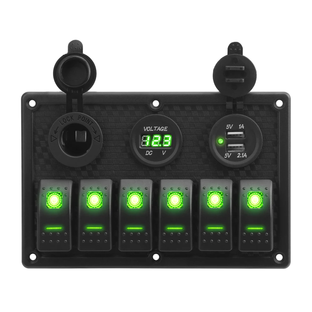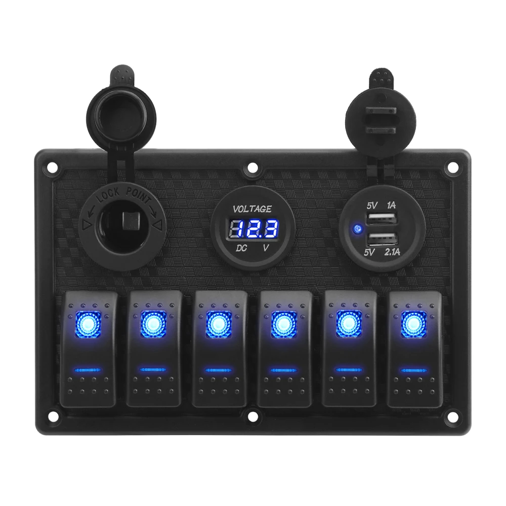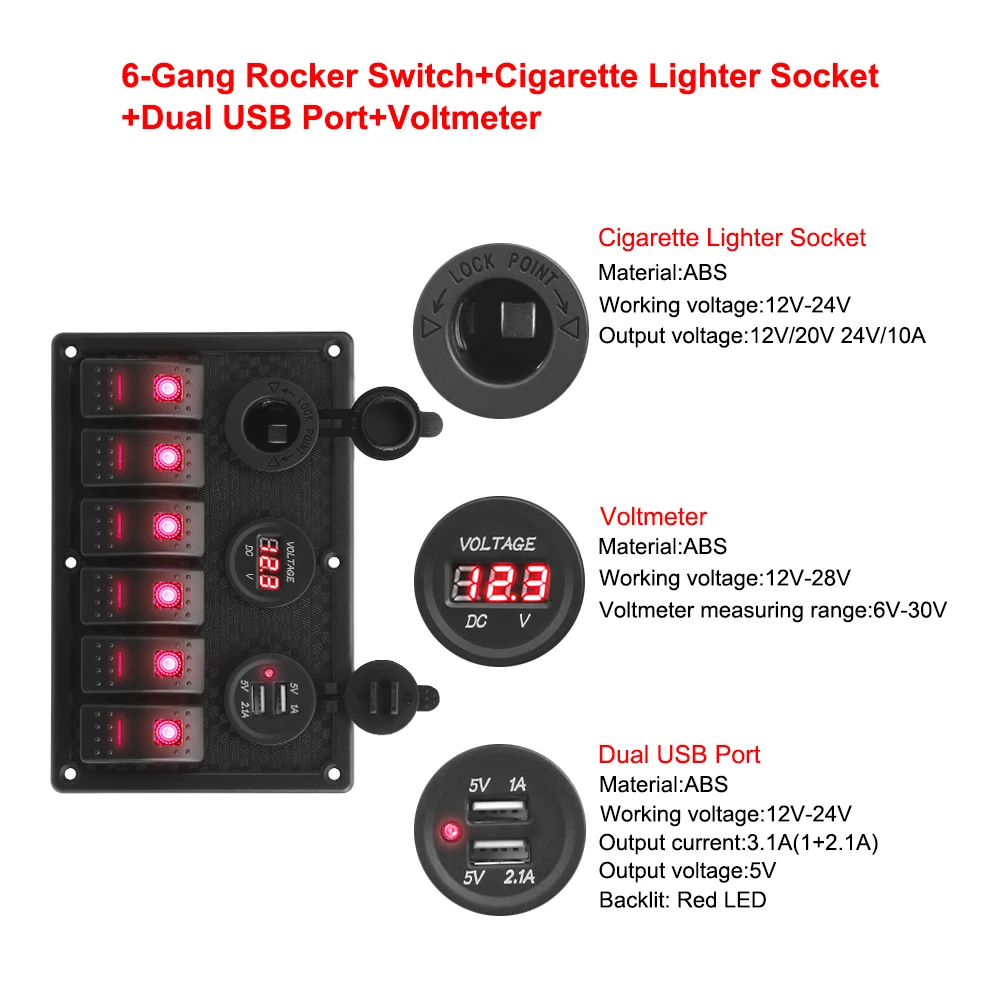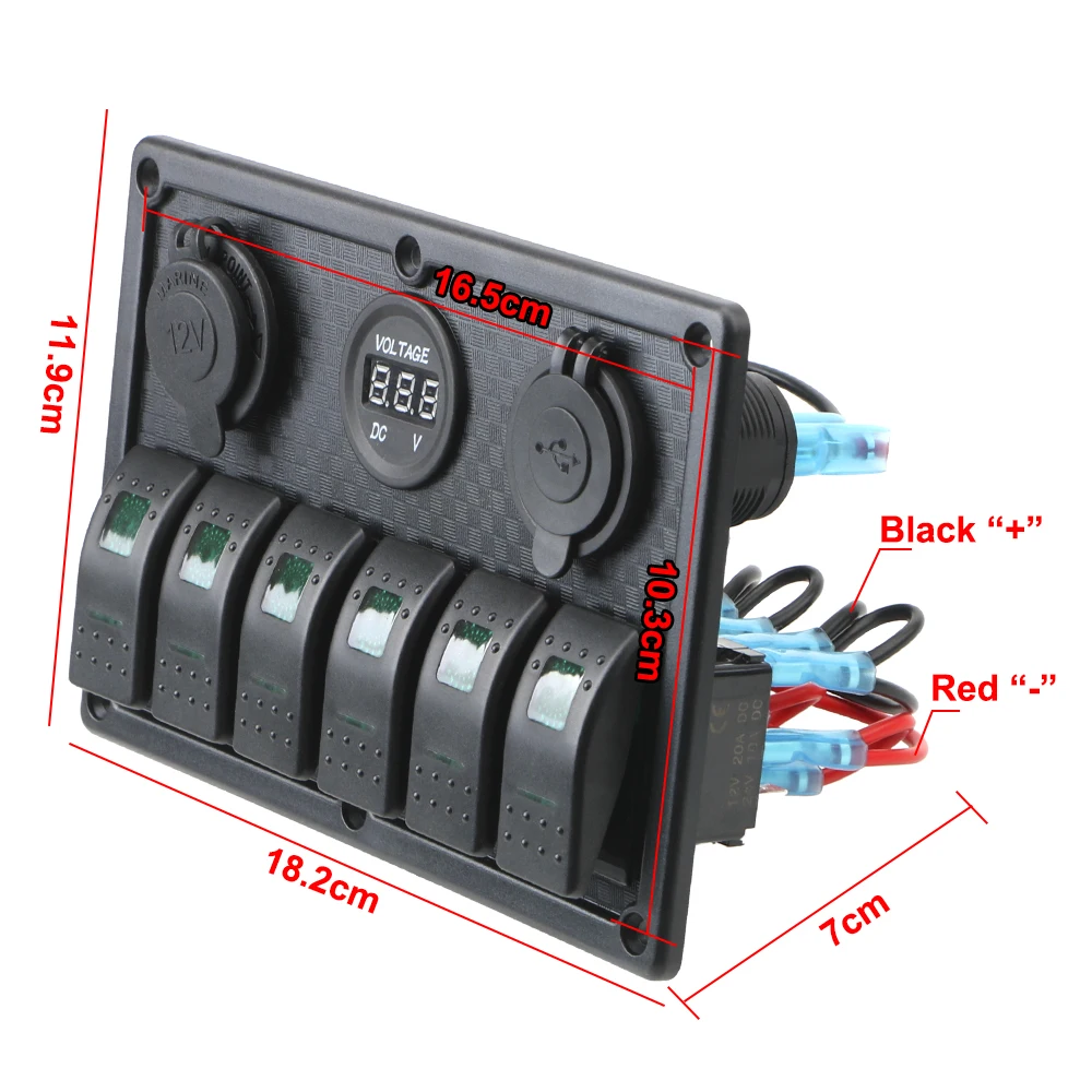 • Fully functional: This switch panel has digital voltage display, LED light indicator, waterproof board, 12V charger and double 5V USB power adapter.