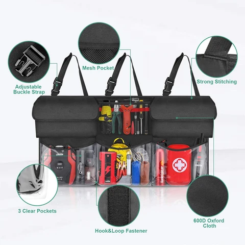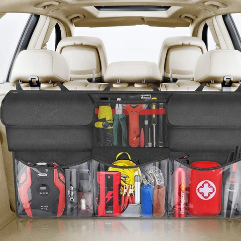 Rear Seat Back Storage Bag Multi Hanging Nets 3 Clear Pockets Trunk Case Organizer Stowing Tidying Interior Accessorie Black