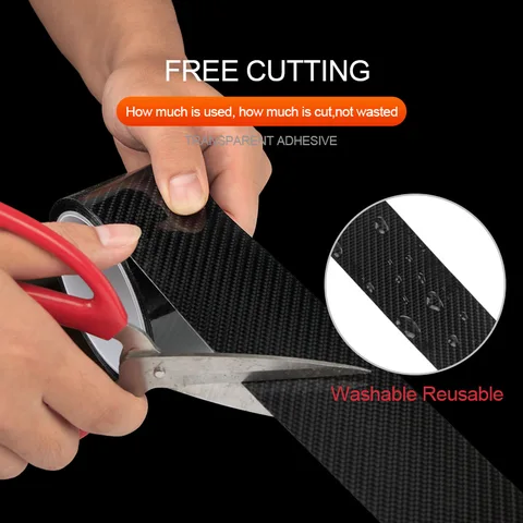 Car Door Sill Strips Protector 5D Carbon Fiber Car Stickers Vinyl Film Auto Bumper Sticker Car Anti Scratch Scuff Tape Universal
