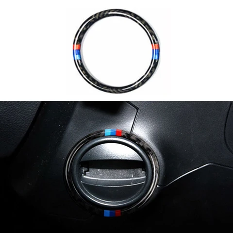 Carbon Fiber Car Engine Start Stop Button Ignition Device Keyhole Ring Cover Sticker For BMW E60 5 Series 2008-10 Accessories