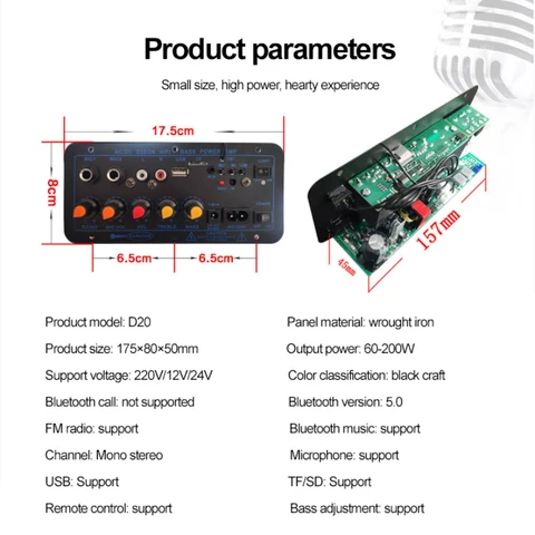 5, Digital power amplifier, peak power 200W, can drive 4Ohm 100 magnetic speakers;
