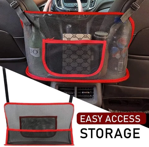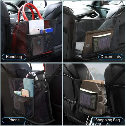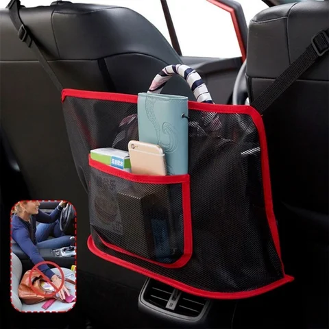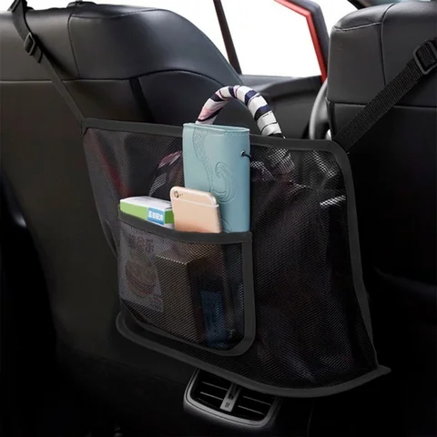 Seats Storage Net Bag Between Seats Divider Pet Barrier Car Interior Organizer Adjustable Handbag Pocket Auto Accessories