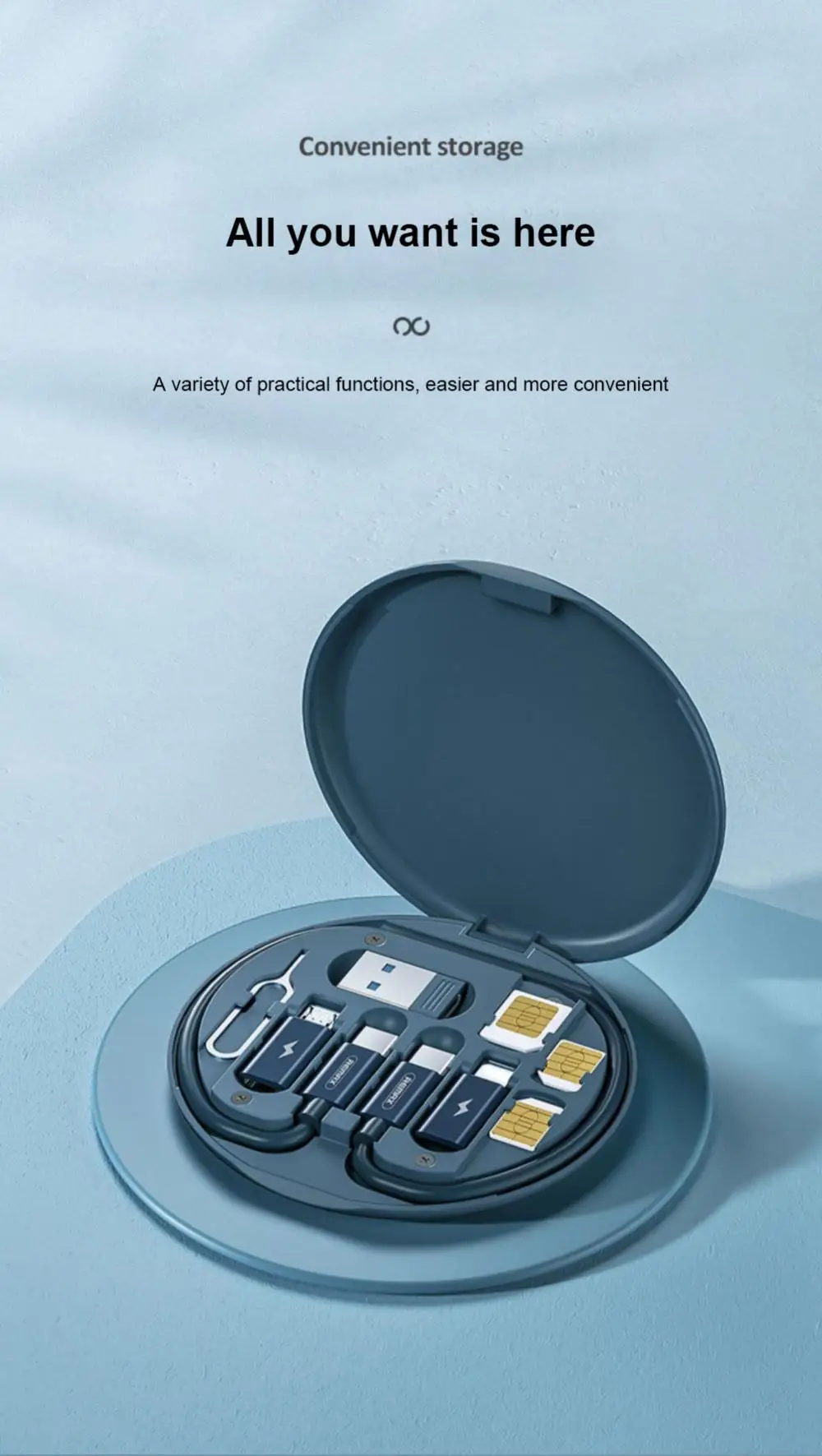 2022 New 60w Fast Charging Multi-function Data Cable Mobile Phone Holder Storage Box With Retrieve Card Pin