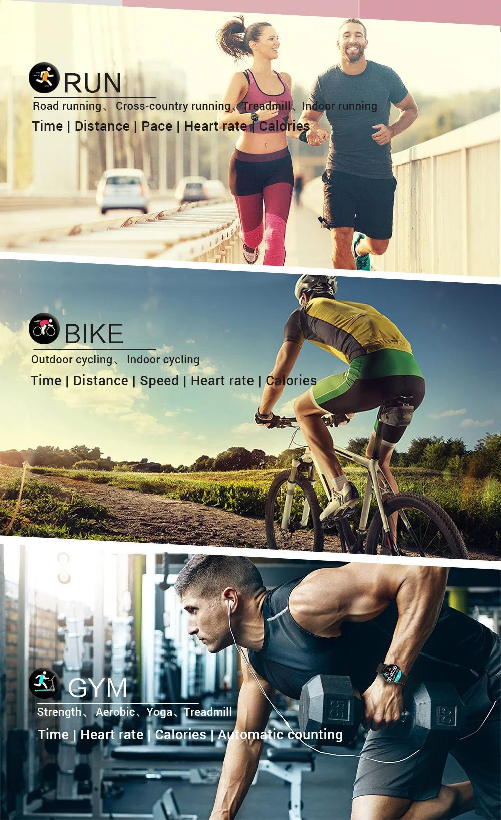 1.Multi-sport:Runing、walking、biking、mountaineering, etc.