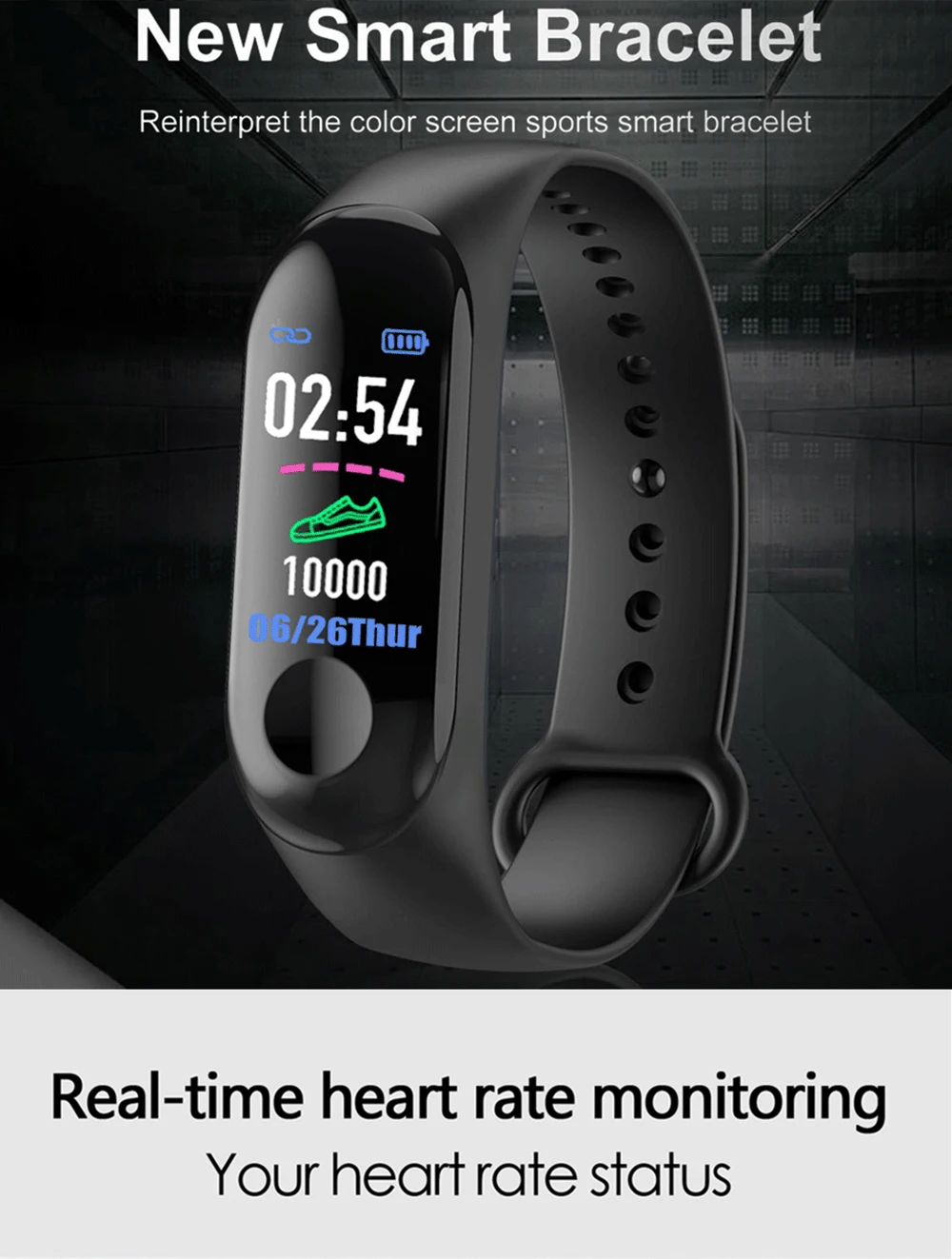 For the first time, make sure that the battery is in normal power. If the power is not turned on properly, please connect the charger to charge the device, and the bracelet will automatically turn on.