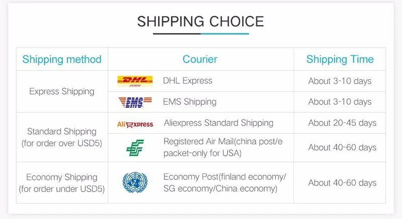| Logistics mode | Estimated limitation of transportation (working day) | Country | District | Postcode | Weight(kg) | Gross freight |