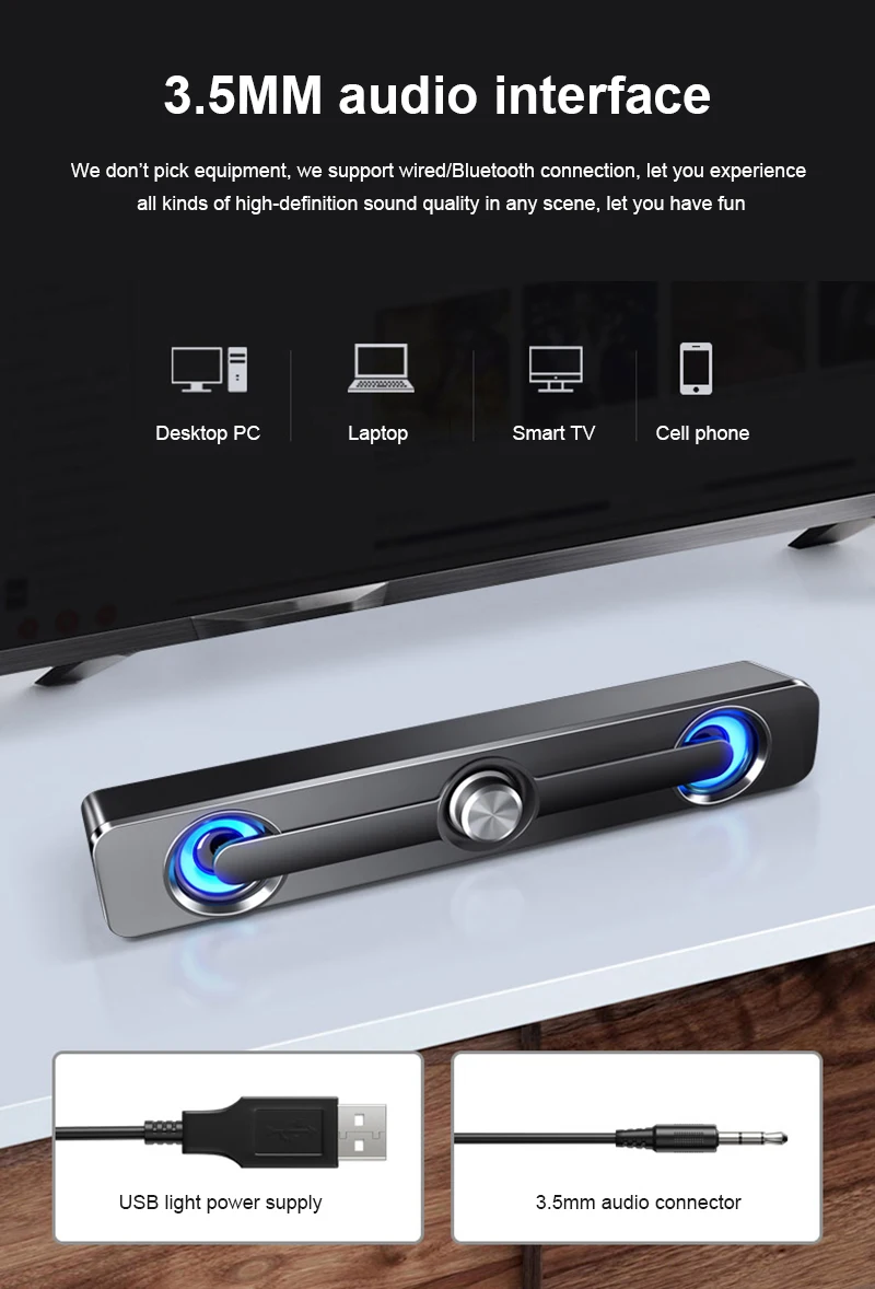 3.5mm audio interface: supports wired/Bluetooth connection.