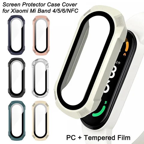 IN 1 Tempered Film Glass Case for Miband 4 5 6 NFC Screen Protector For Xiaomi Mi Band 6 5 4 Hard PC Bumper Protective Cover