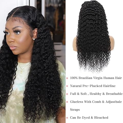 • HAIR MATERIAL: 100% unprocessed brazilian virgin hair Pre Plucked bleached knots, deep wave lace front wigs human hair. Soft, smooth, skin-friendly and shiny.No smell, full and thick