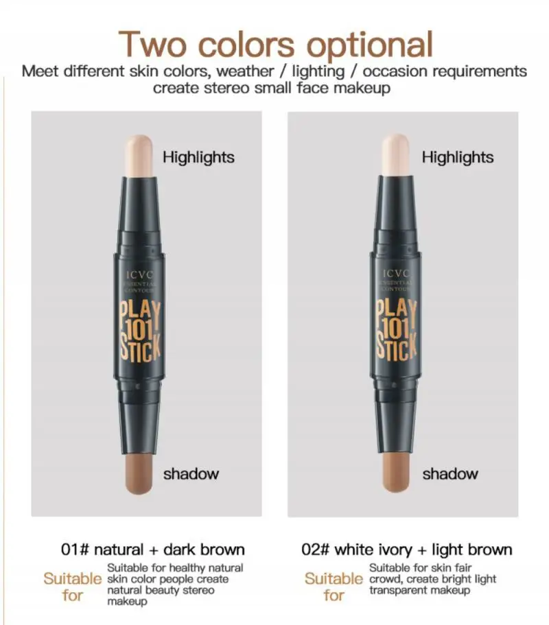 Double Head Face Highlighter Makeup Long Lasting Brighten Face Contour Repair Bronzer Concealer Stick Face Makeup TSLM1