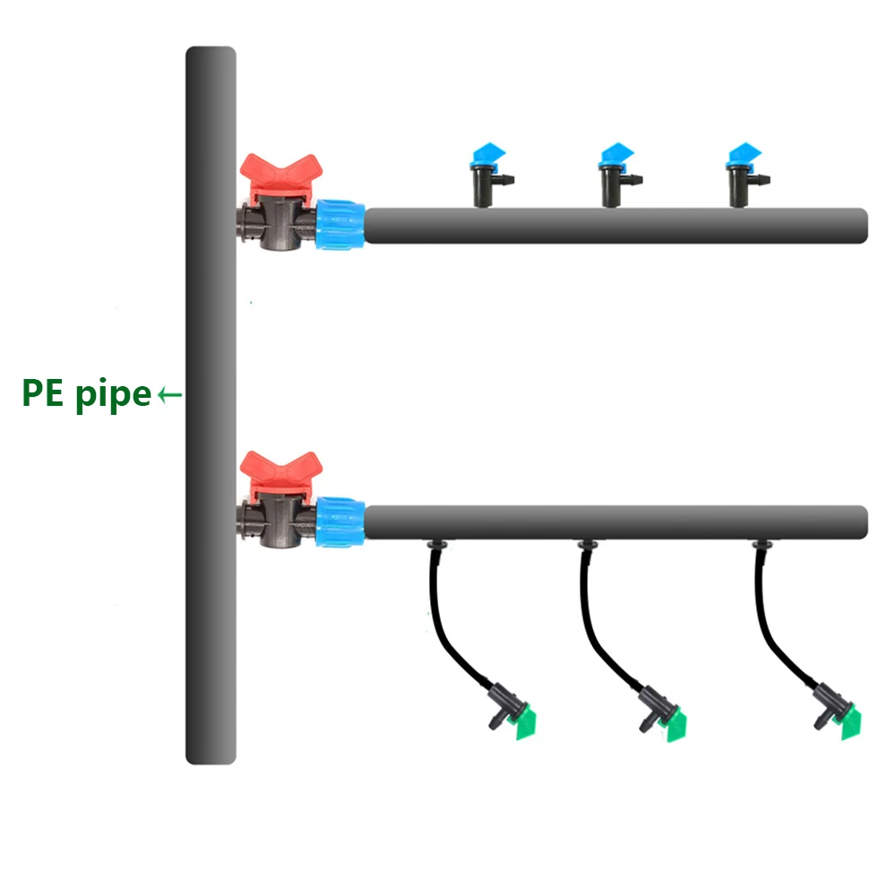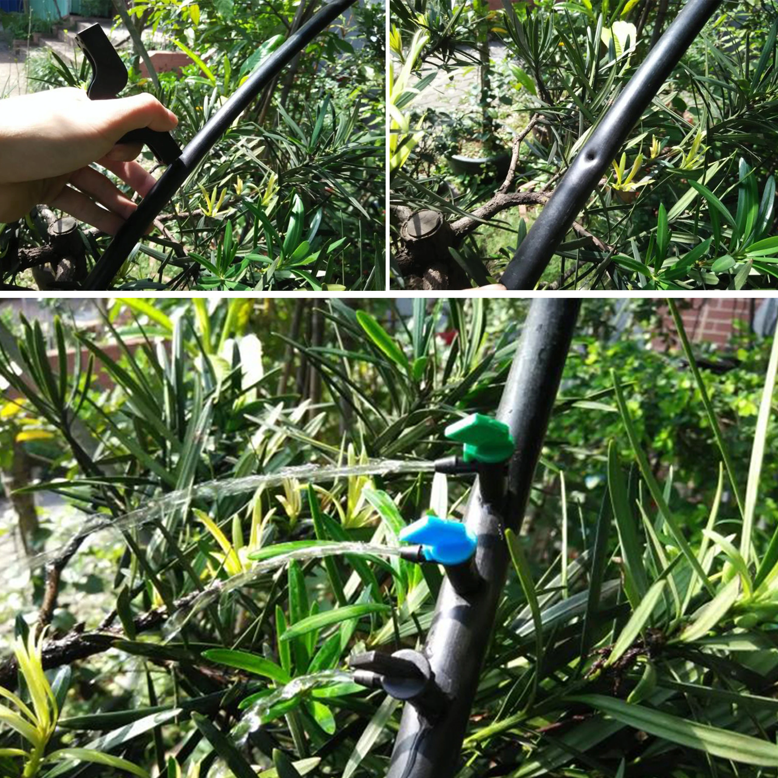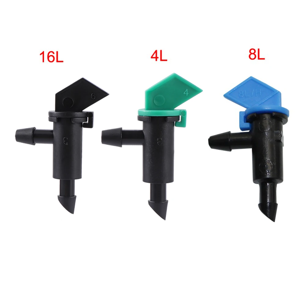 This Irrigation Dripper has a 1/4 inch barb connection which can connect 4/7mm hose ,or just direct connect the PE pipe by drilling a 3-4mm hole,it is widely used in irrigation of horticulture,balcony gardening, garden and other places.