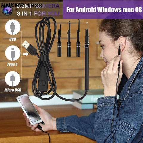 Otoscope Megapixels Ear Scope Inspection Camera 3 In 1 USB Ear Digital Endoscope Earwax Cleansing Tool With 6led